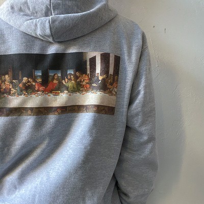 名画「最後の晩餐」がバックにプリントされた