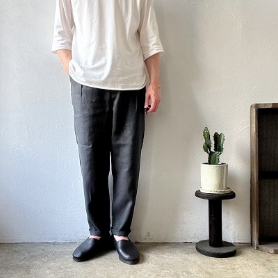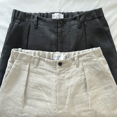 いたいリネン素材のスラックス。