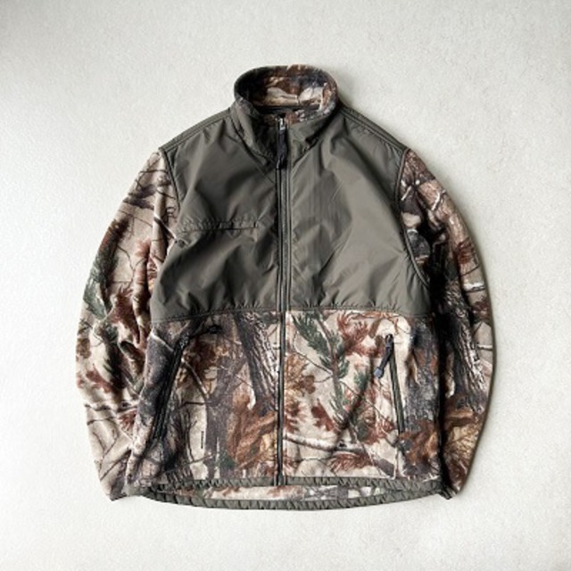 【TRI - MOUNTAIN】 トライマウンテン Frontiersman Fleece Jacket すでに廃業してしまったアメリカのアパレルブランドTRI - MOUNTAINのリアルツリー柄フリースジャケットです。表の素材は10.2オンスのReaitree社製のフリース素材を使用しており、タウンユースからアウトドアシーンまで幅広く活躍する軽くて暖かな一枚です。肩から胸にかけてとアームの背面にある補強用のナイロンパネルが機能的かつデザインのポイントになっています。ハンドウォーマーポケットはジッパー付き。ボトムのスピンドルコードで裾の広がりを調整可能。 【こちらのブログでご紹介してます】 https://kottony.buyshop.jp/blog/2023/01/17/201759 ベトナム製 表地 ポリエステル100% 別布 ナイロン100% M:着丈75 身幅60 肩幅47 袖丈68 (cm) 商品により若干の誤差が生じます。 モデル170cm 62kg サイズMを着用 ※ご注文の時間によってはご希望の日時に間に合わない場合がございます。予めご了承くださいませ。 ¥19,800(税抜)