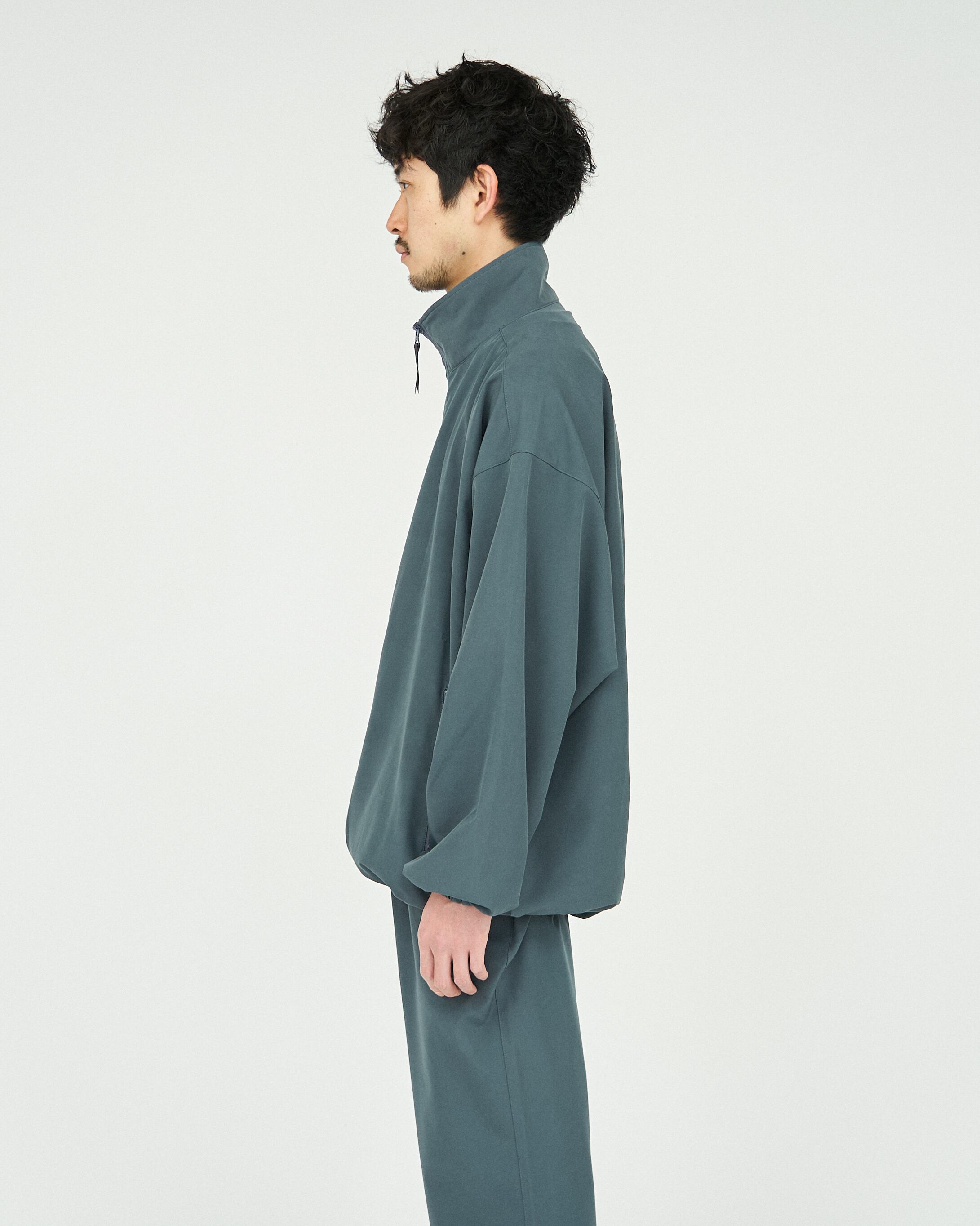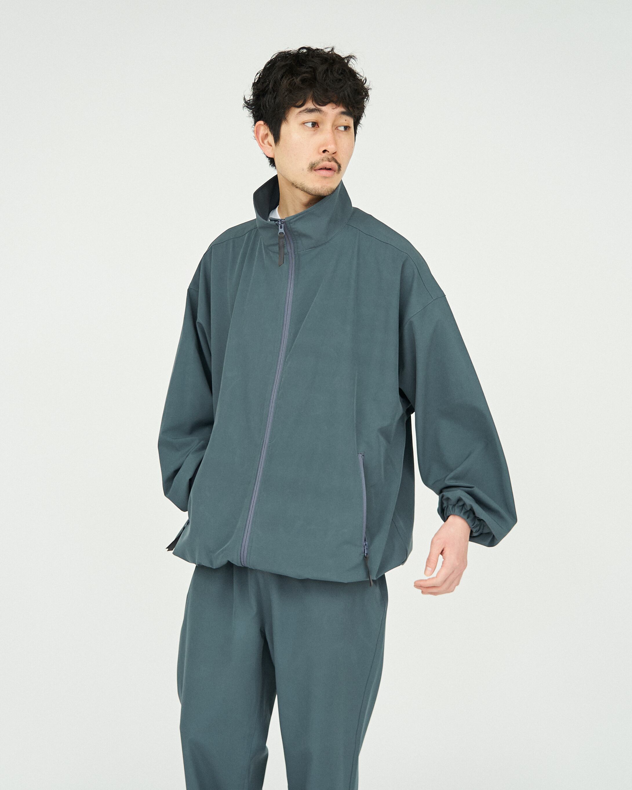 優れたストレッチ性と透湿性を持ち合わた2重織ストレッチ素材。裏面の凹凸組織により肌離れが良く快適な着心地。裾部のドローコードで着丈やシルエットの調整が可能。イージーケアで快適な着用感はアクティブなシーンにも活躍する一着。同素材のパンツとセットアップスタイルが可能です。