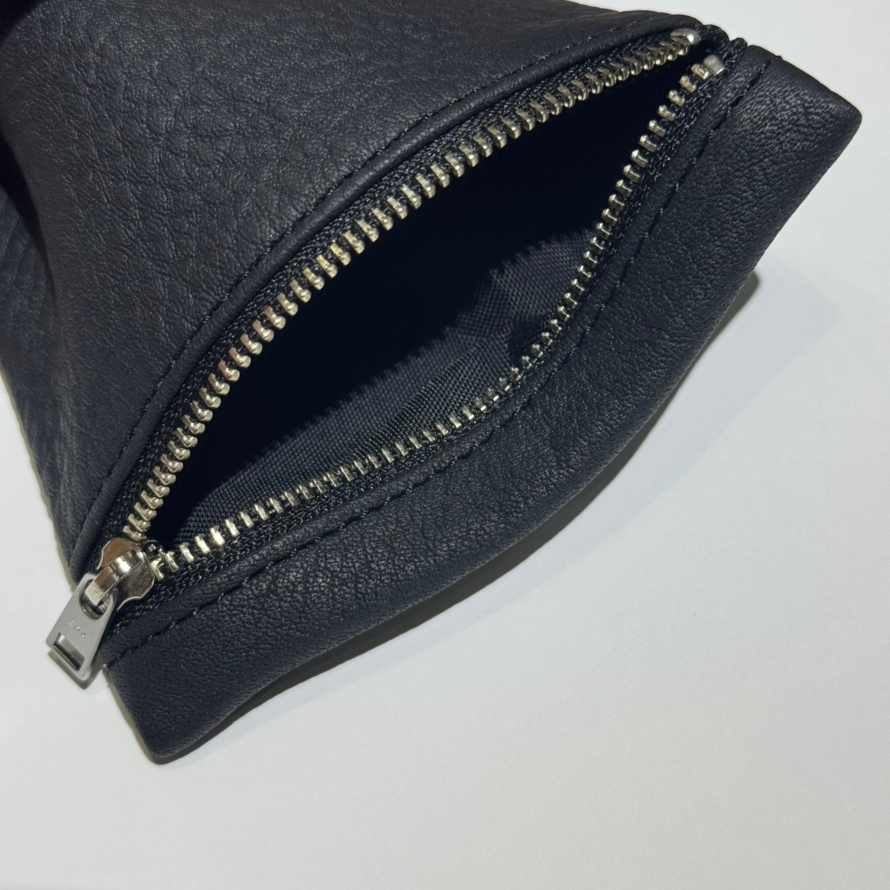 バッグ内の小分け・整理に便利なマチなしのポーチ。EOシュリンクレザーの高級感ある見た目と柔らかで優しい触り心地が所有欲を誘います。何に使うかを考えるよりも先にほしくなってしまう、そんなアイテムです。リップや目薬、常備薬などの携行品の収納に、また、ポケットに入れてもかさばらないサイズなのでお財布としてもおすすめです。アイデア次第で様々な用途に自由にお使い頂けるレザーポーチです。