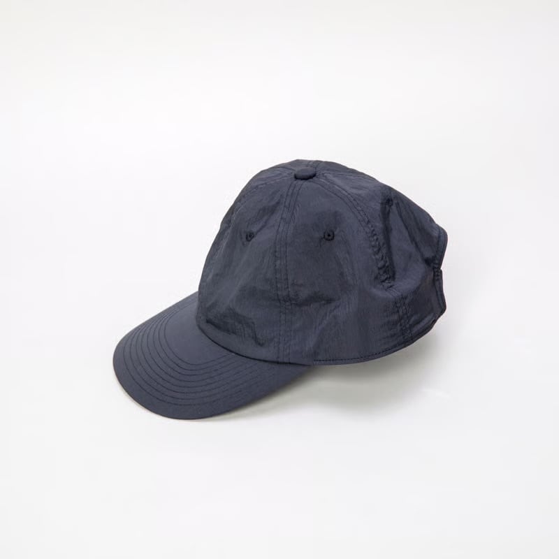塩縮加工を施したナイロンタフタを使用したシンプルな6枚ハギのキャップ。日本人の頭に合う絶妙な深さとクセのないデザインで、どんなスタイリングにもハマるのでとても重宝します。70Dナイロン糸を使ったハリ感としなやかな風合い。弱撥水性を兼ね揃えたタフタ生地に塩縮加工を施し、シワ感のあるマットで落ち着いた表情に仕上げています。シワを気にせずにバッグの中に入れたりと気軽に使えて便利。ナイロン製なので洗濯もできて、イージーケアなところも◎です。