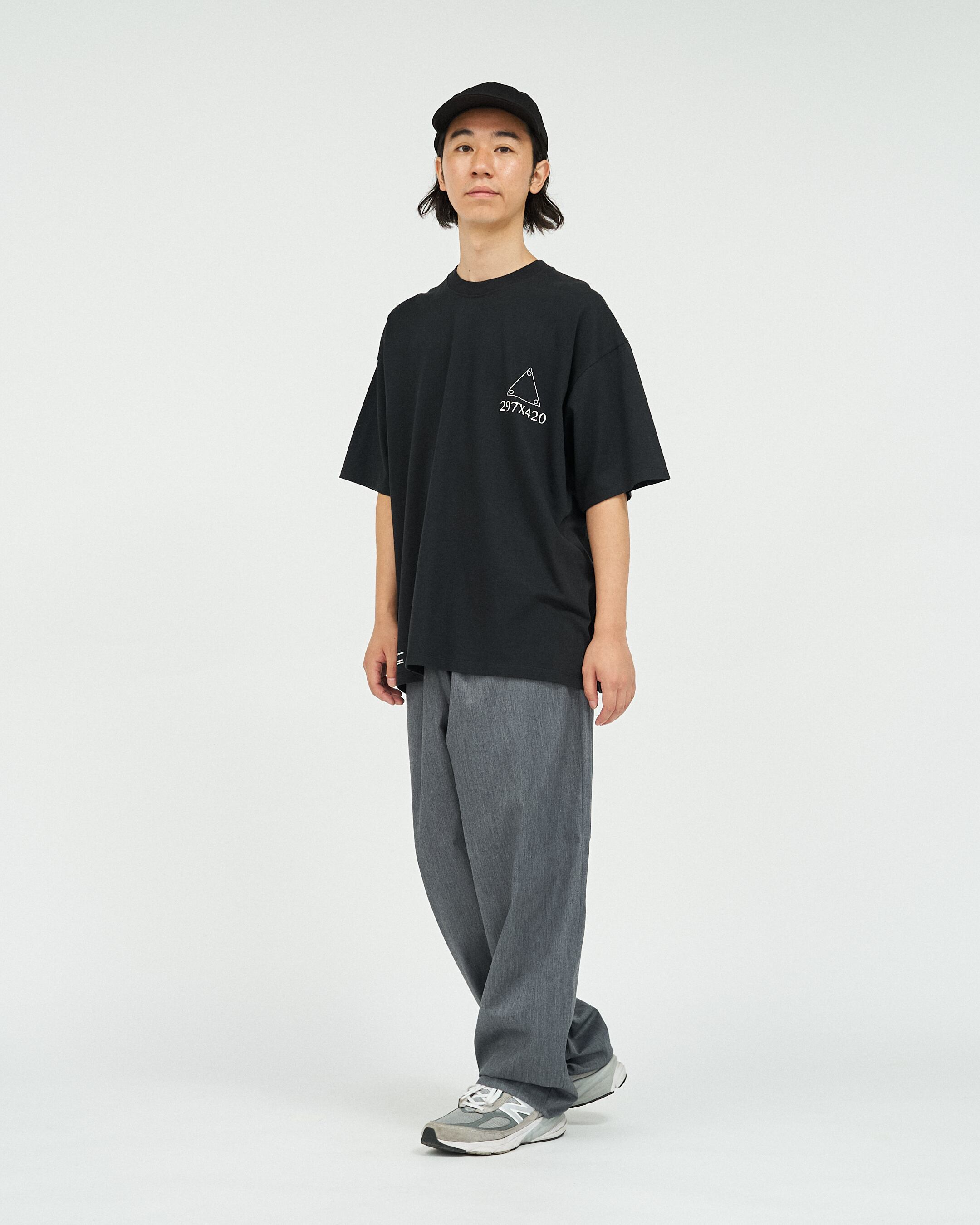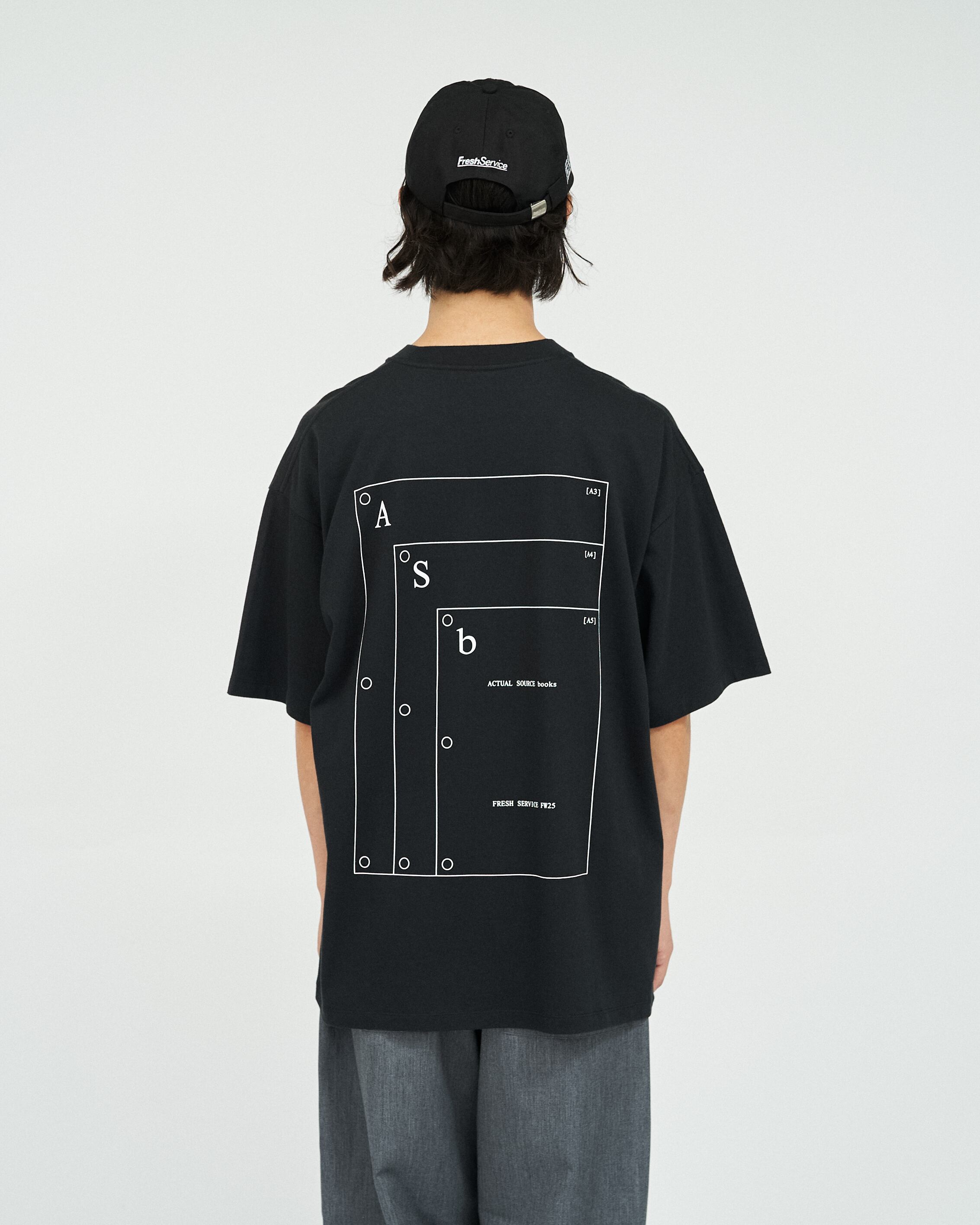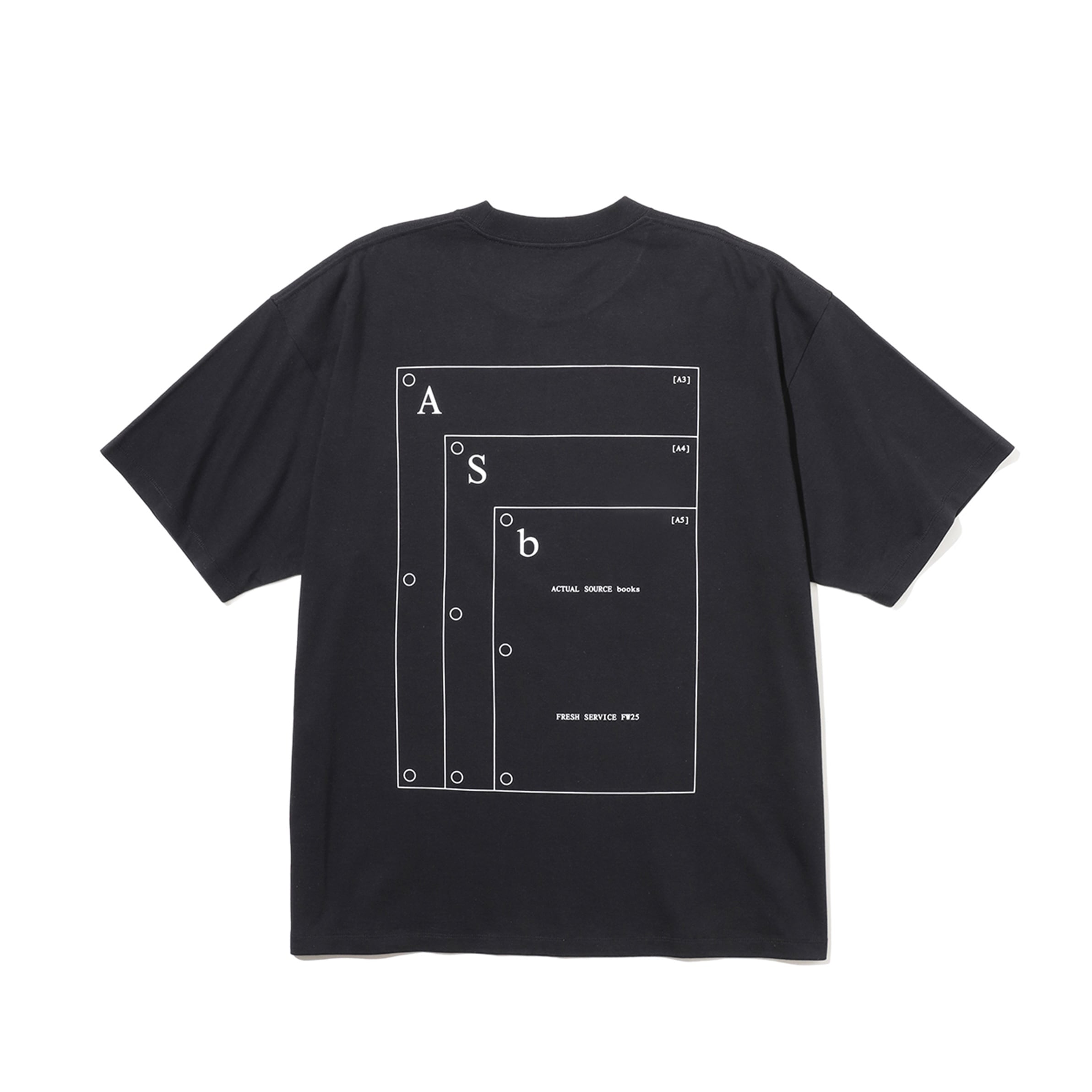 出版やアート、アパレルまで幅広い活動を展開するデザインスタジオ『Actual Source』とのコラボレーションカプセルコレクション。定番の「2-PACK CORPORATE S/S TEE」をベースに、背面へユニークなグラフィックをプリントしました。ファイルやバインダーを思わせるレイアウトで“ASb”を配置したデザインは、Actual Sourceが得意とする出版物やアーカイブを連想させるもの。シンプルなラインで描かれた構図は、日常的なアイテムにアート的視点を取り入れています。ドロップショルダーのリラックス感あるオーバーサイズシルエットで、モダンな空気感を纏った一着。1枚で存在感を放つTシャツです。