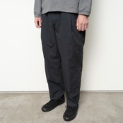 反発感のある素材を使用し、製品染めを施したコットンパンツ。中肉素材で程よいハリ感が特徴です。製品染めならではの色合いは表情の変化も楽しめ、長く着用することで風合いも増していきます。ポケットはこだわりの玉縁仕上げ。シルエットは中太のテーパードで、少しすっきり目に穿いていただけます。