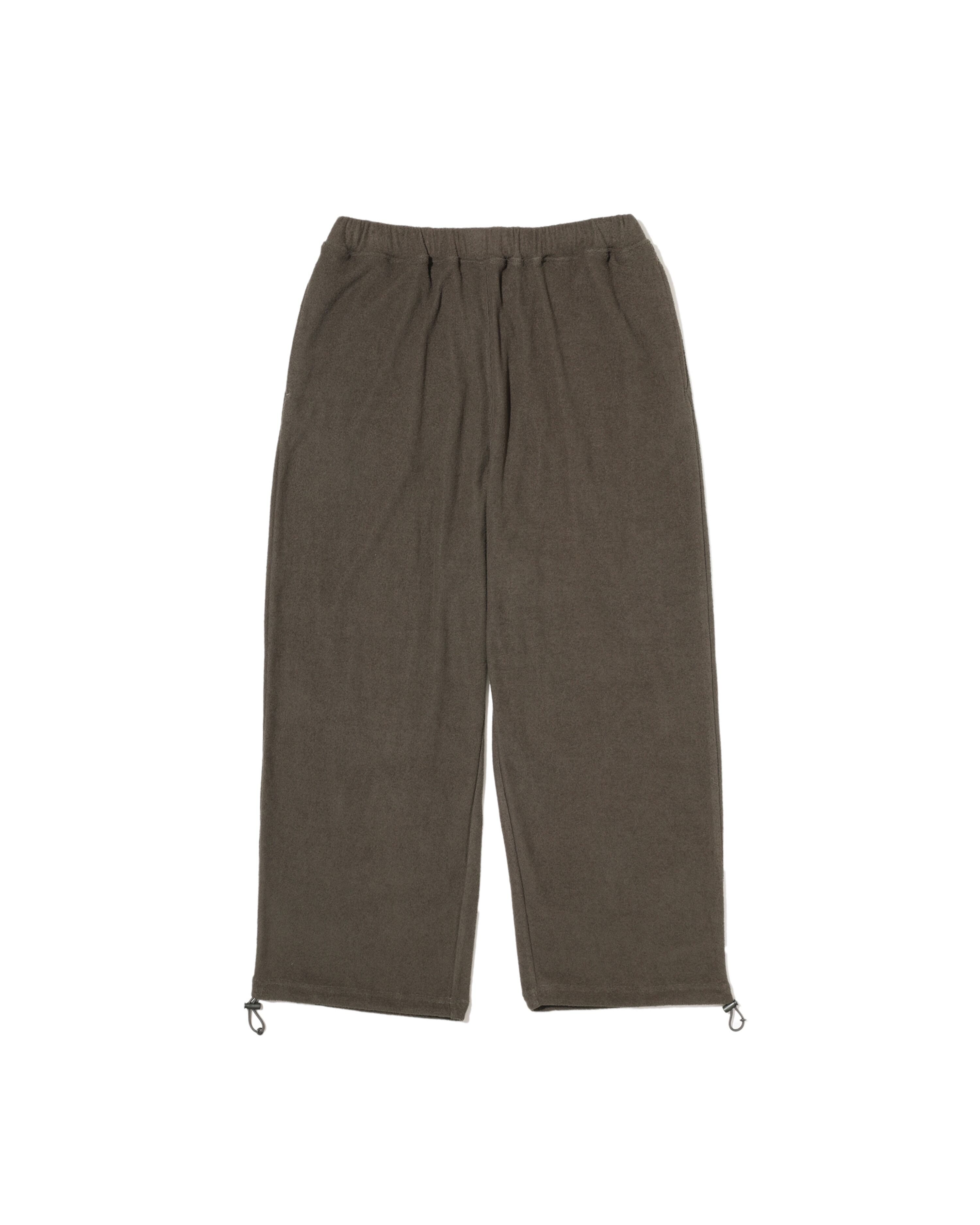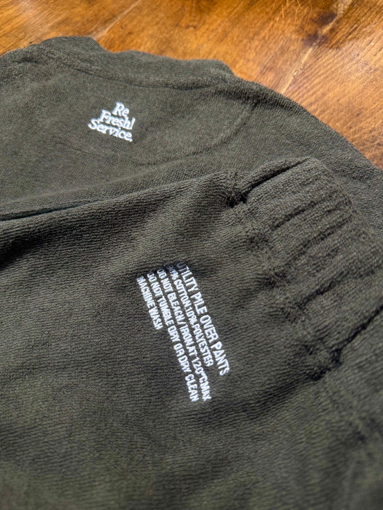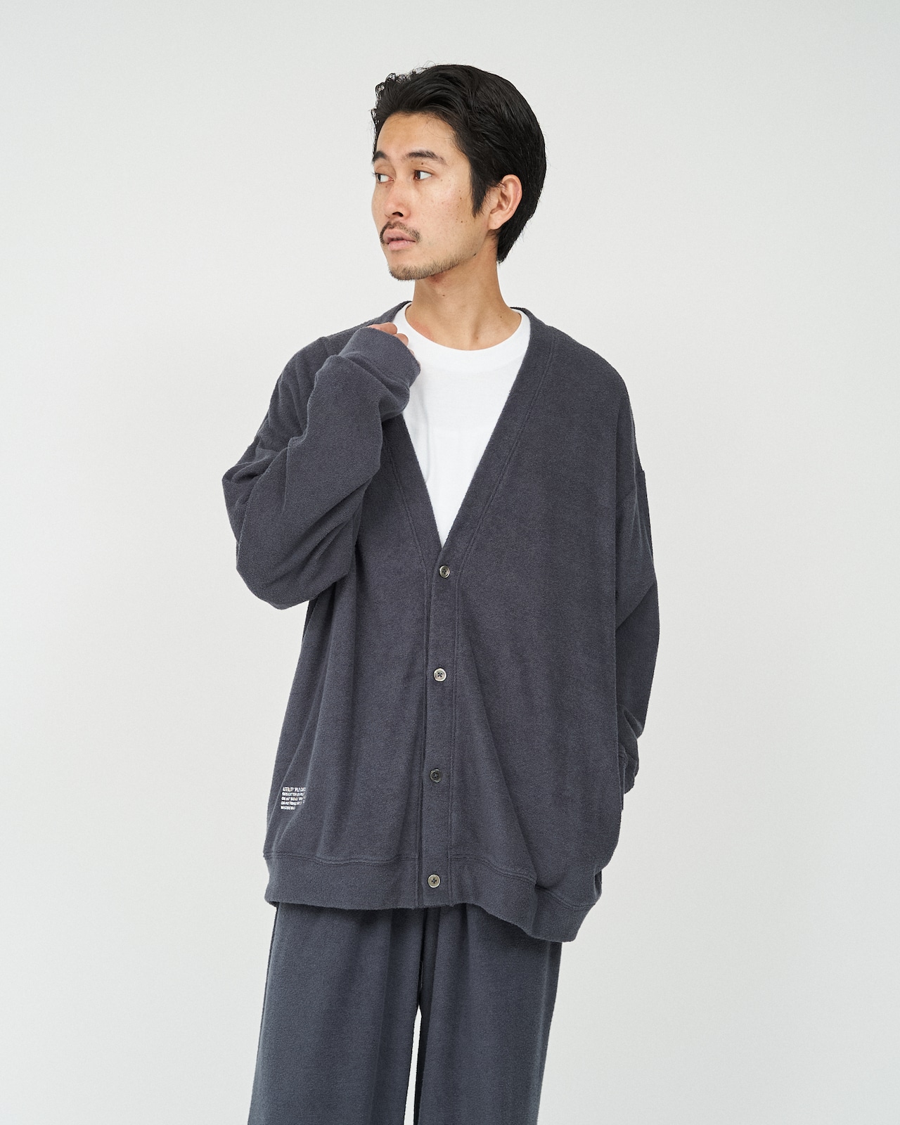 柔らかな肌触りでリラックス感溢れるパイル地を使用したReFresh!Serviceのカーディガンとイージーパンツのセットアップ。ゆったりとしたサイジングで伸縮性も抜群。通気性も良くルームウェアとしても快適。パンツの裾にはスピンドルコードが付いており、スタイリングのアレンジが可能です。