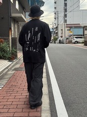 出版やアート、アパレルまで多岐にわたる活動を展開するデザインスタジオ『Actual Source』 とのコラボレーションカプセルコレクション。背面には“出版物の背表紙”を積み重ねたようなグラフィックを大胆にプリントしました。細かなタイポグラフィや記号を組み合わせたデザインは、Actual Sourceが持つ出版的アプローチを象徴するもの。シンプルなボディにプリントのコントラストが際立ち、知的でアートフルな存在感を放ちます。ドロップショルダー仕様のオーバーサイズシルエットで、リラックスした着心地を実現。1枚で主役になるのはもちろん、ジャケットやシャツとのレイヤードにも活躍するアイテムです。