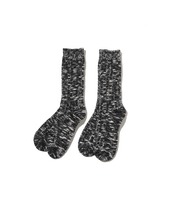 どこか懐かしいアウトドアテイストで、凹凸のあるスラブ糸をブレンドしたメランジ調のクルーソックス。毎日履きたくなる心地よさを提供し、毛玉も目立ちにくく耐久性も抜群。同色の2パック展開。