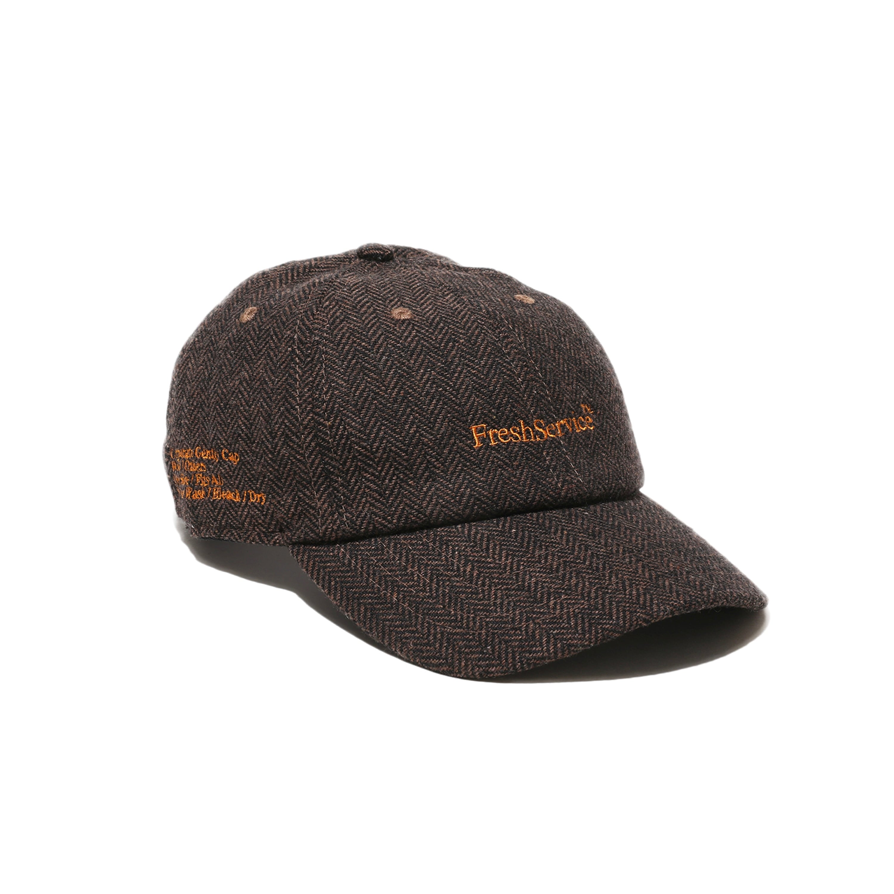 ウールをブレンドしたヘリンボーンのファブリックがトラディショナルな雰囲気を醸し出す新型のキャップ。ブランドロゴとスペックの刺繍には CORPORATE CAPとは違った趣のフォントを用いることでシックな印象に。ニューヨークの老舗帽子メーカー〈ニューハッタン〉をベースにFreshservice流にアレンジ。真鍮製の留め金がついたアジャスターでサイズ調整も可能です。
