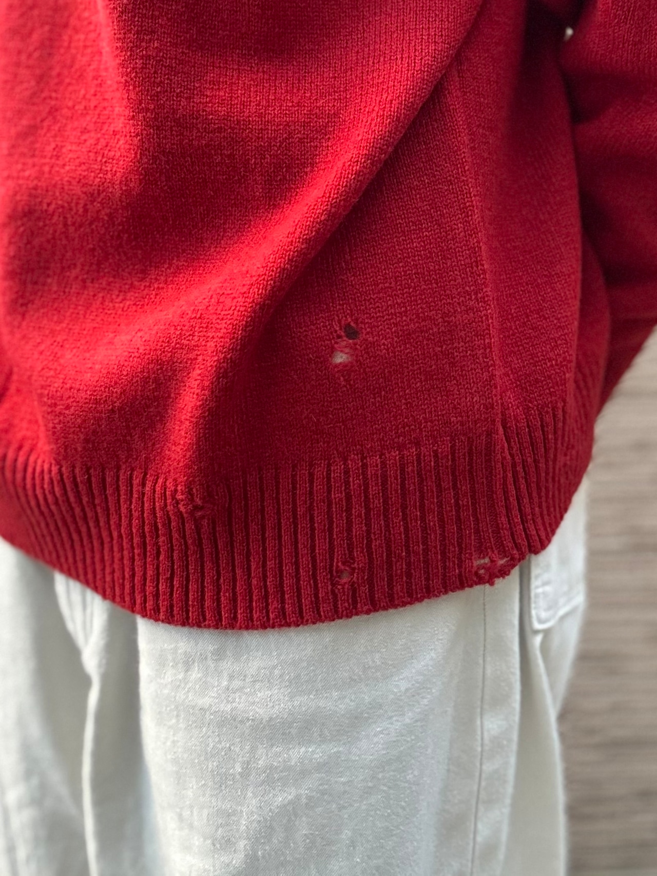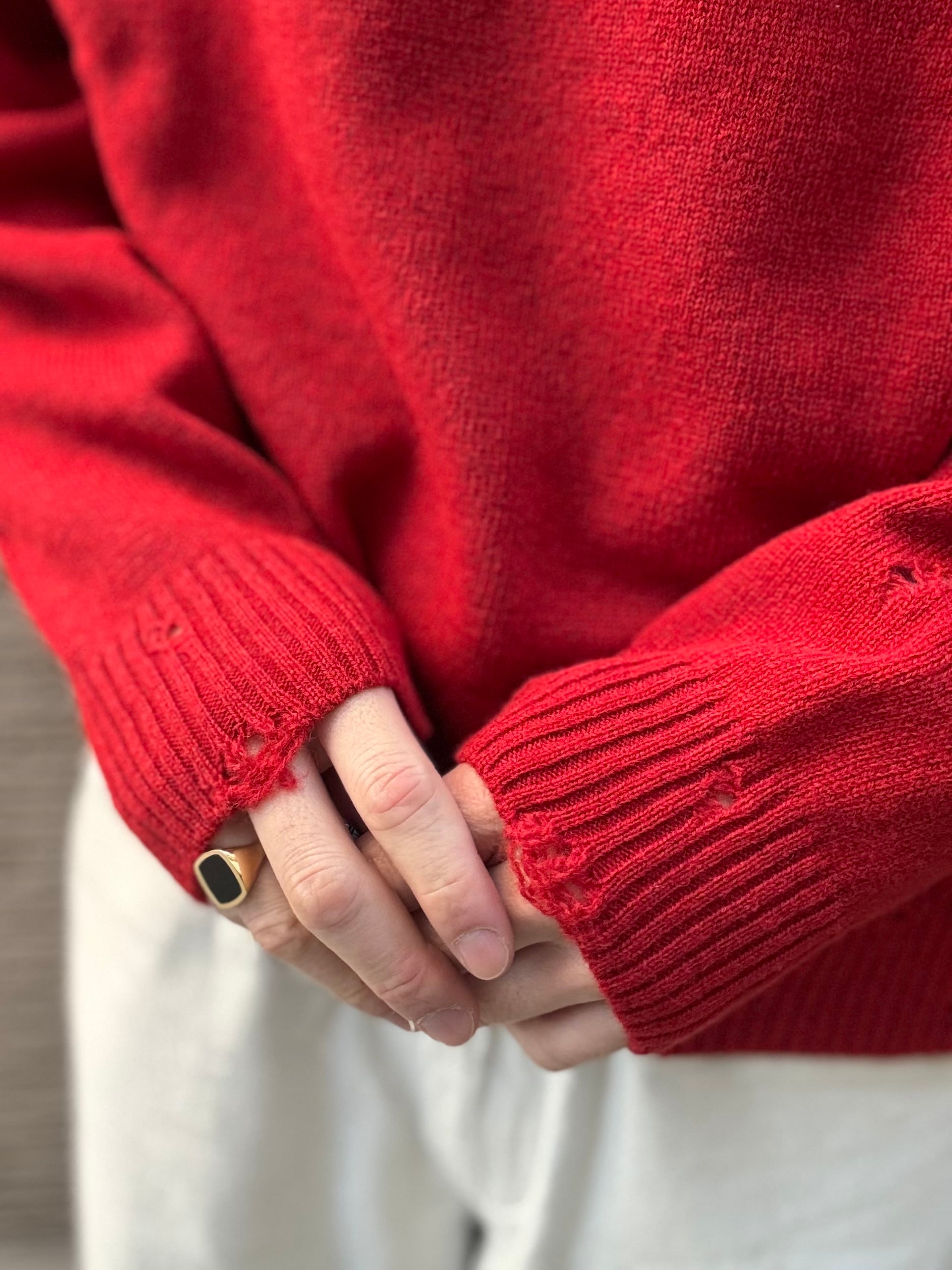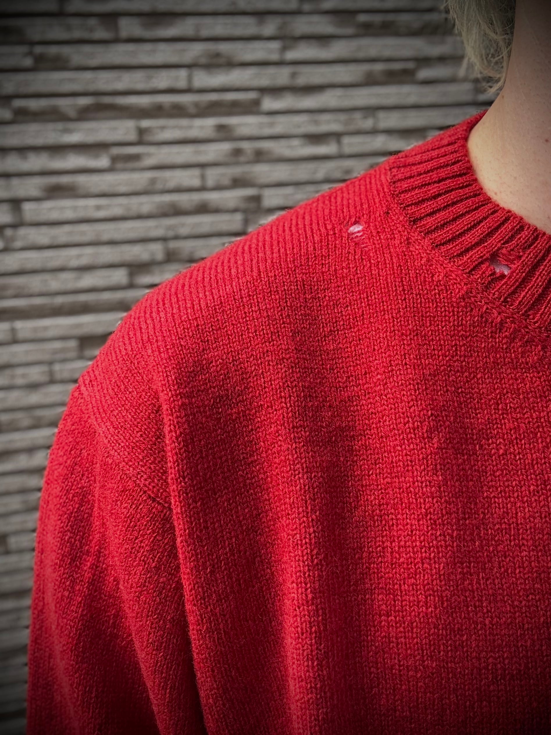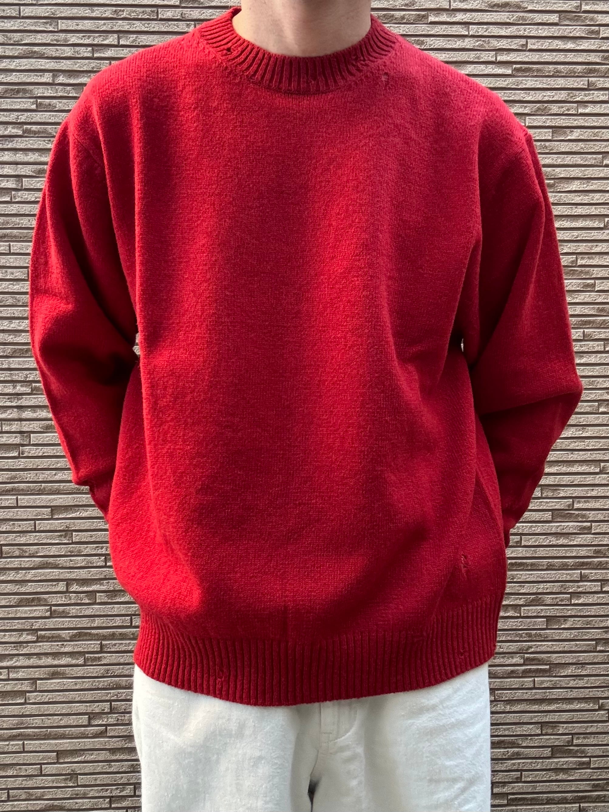 STILL BY HAND Punched shetland sweater KN01253 (vermilion red) スティルバイハンド
