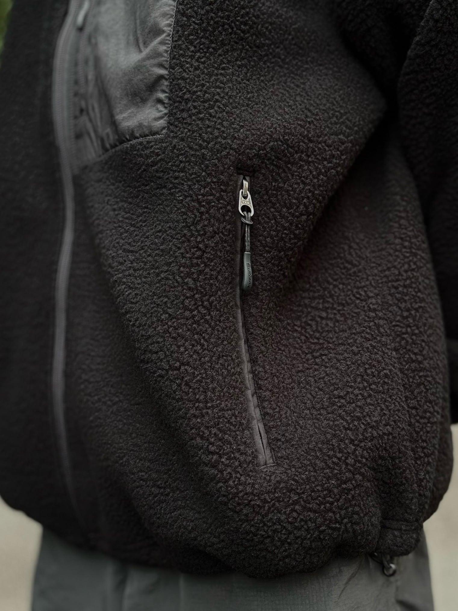 アウトドアブランドの90'Sのボアジャケットから着想を得た、スタンドカラーのジップアップジャケット。軽量ながら保温性があり、柔らかくクッションのような感触のポリエステル100%のボアフリース素材を採用。胸元と首元のナイロン生地の切り替えがアクセントになり、コーディネートに遊び心をプラスします。