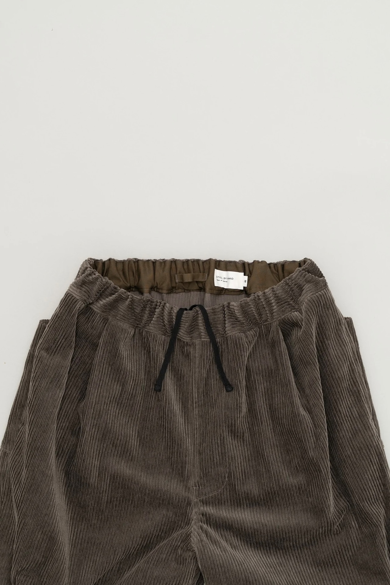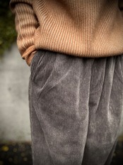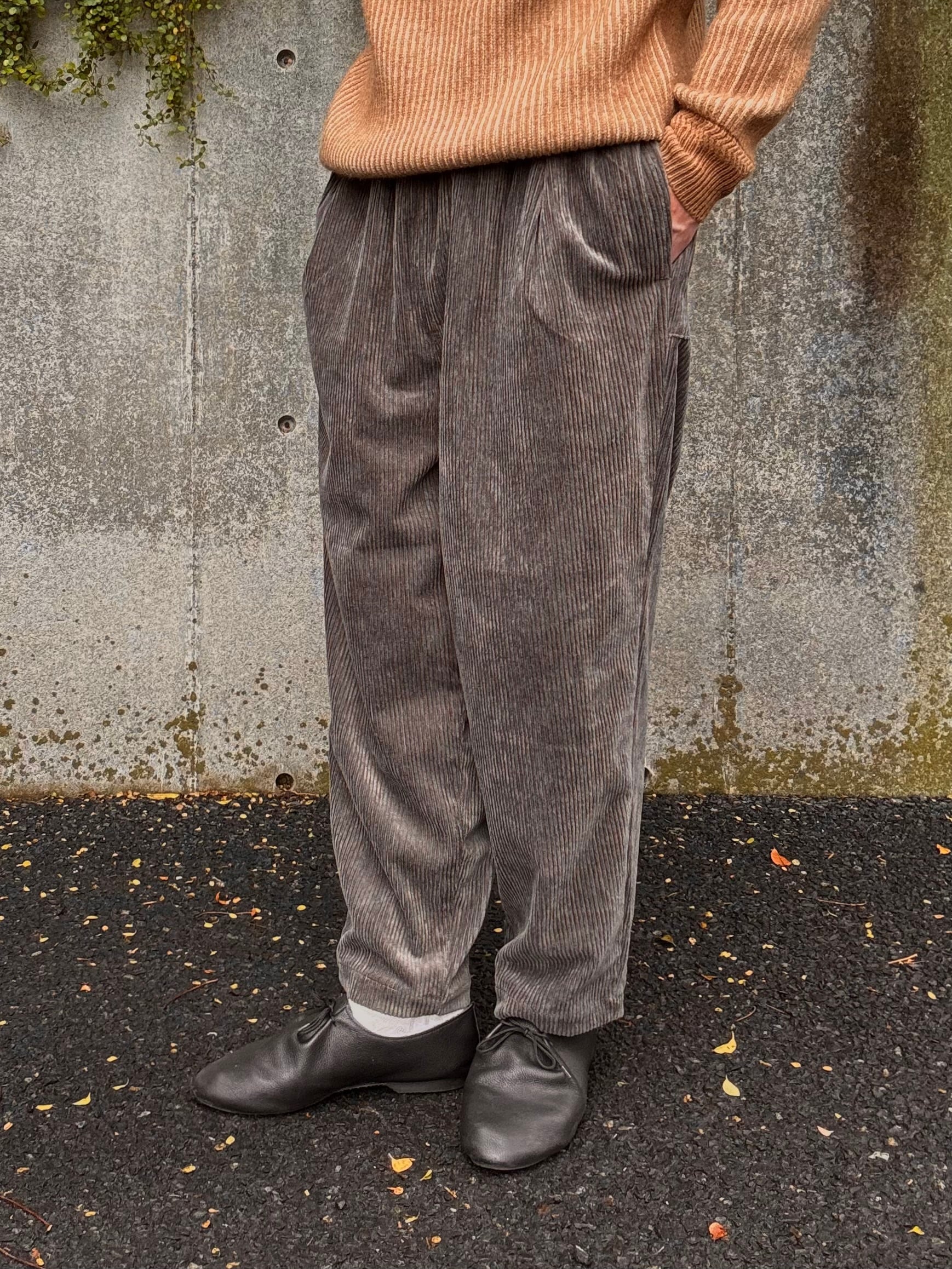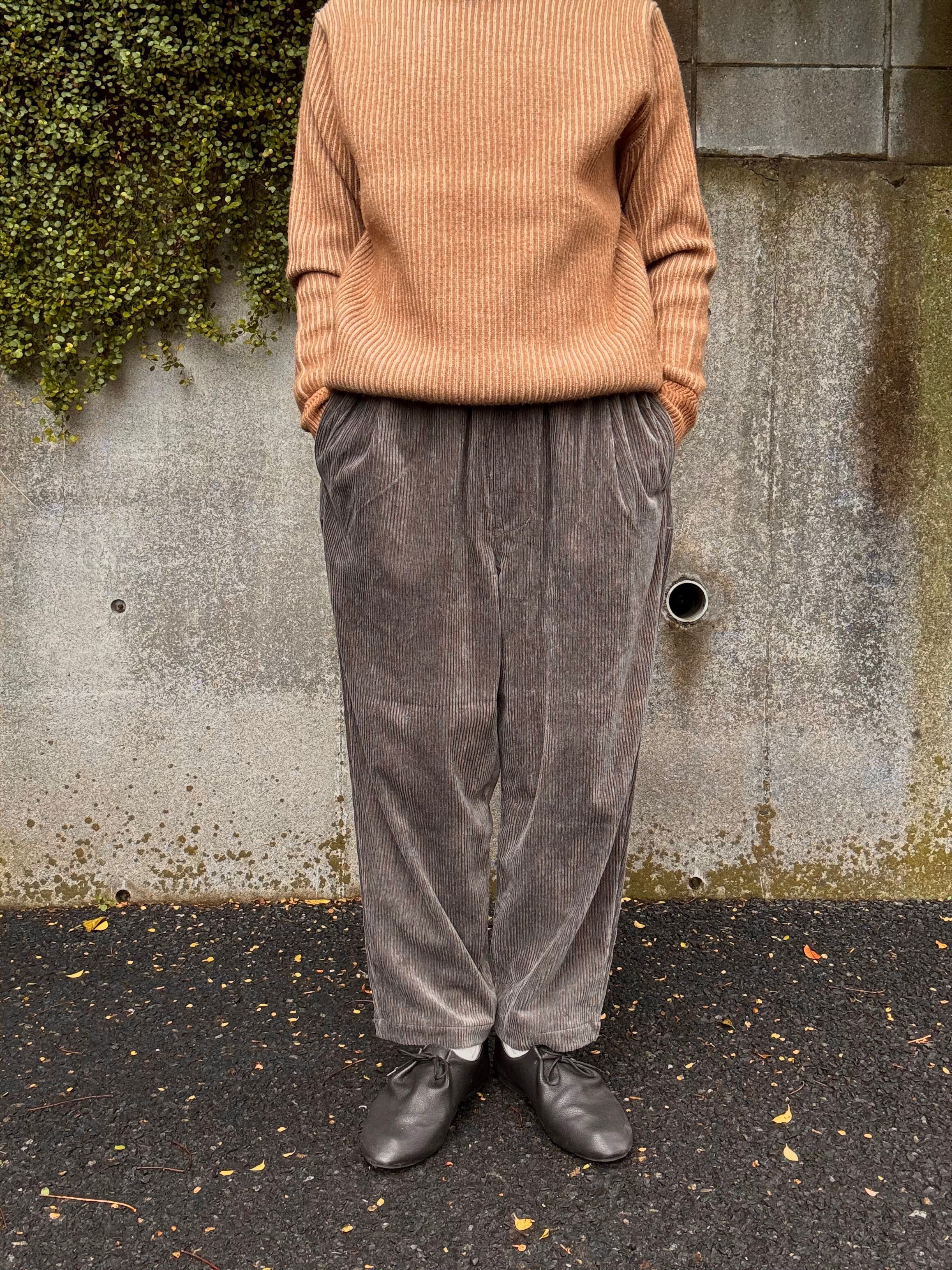 パイル部分に綿/レーヨンの混紡糸を使用した柔らかな風合いのコーデュロイイージーパンツ。程よくテーパーを効かせたリラックスシルエットで、ウエストはスピンドルコード仕様となります。合わせやすく気軽に穿けるデザインに仕上がっていますが、素材とシルエットの良さできちっとしたスタイリングにもマッチするイージーパンツです。