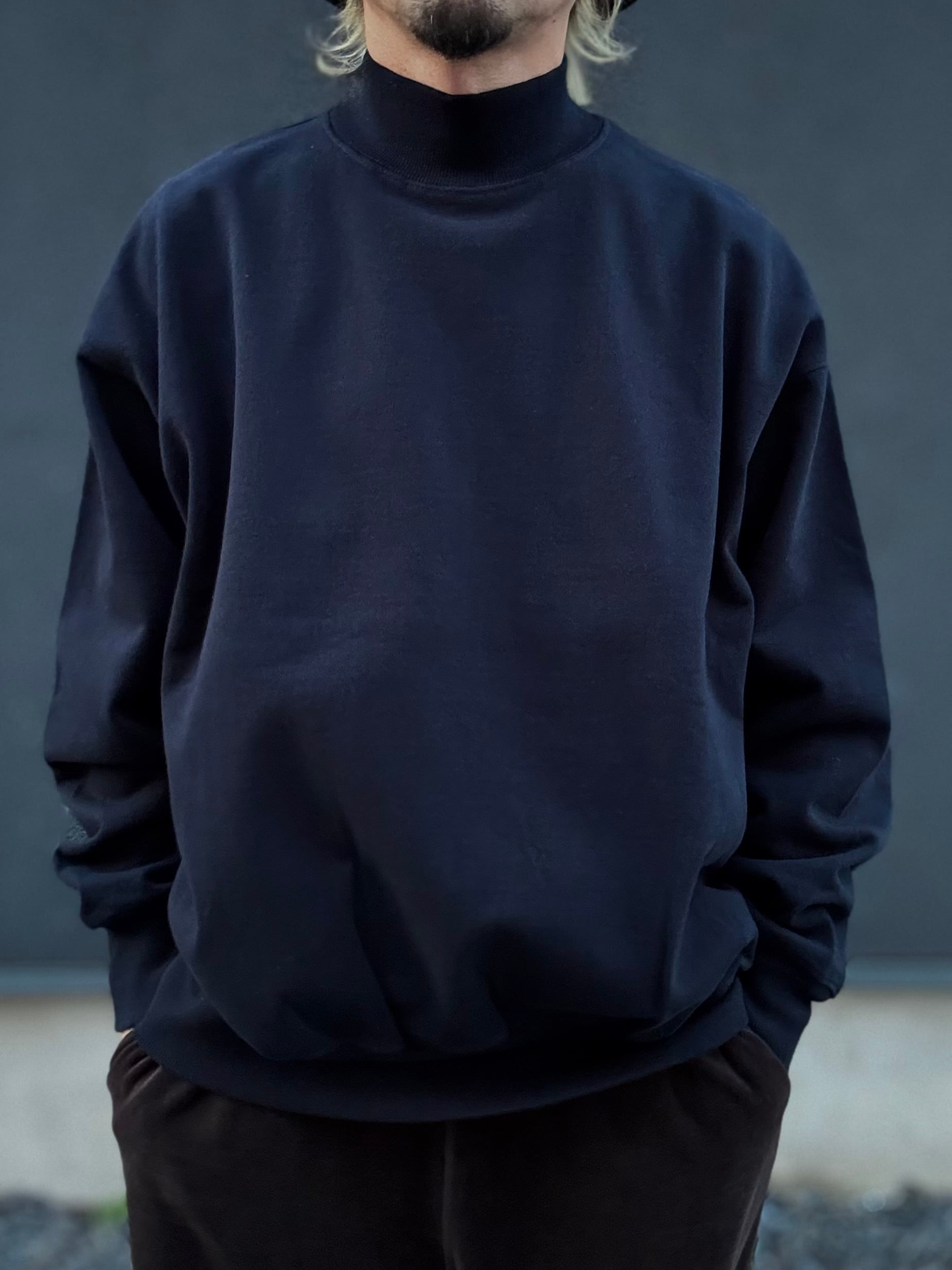 春先から秋冬まで長いシーズンで活用出来る、程良い厚みのモックネックスウェット。空紡糸ならではのドライタッチな表面に対して、甘撚りのループ面が柔らかな肌触りに。身幅からアームまでゆったりとしたFreshServiceらしいルーズフィット。