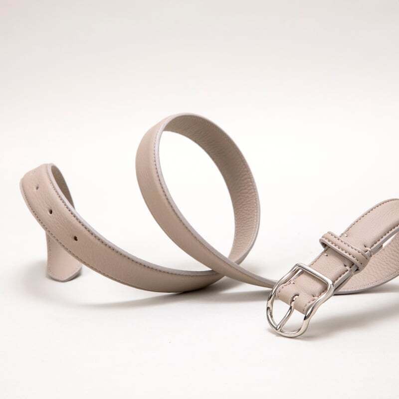 どんなスタイルにも合うシンプルなベルトは、イーラ.の顔でもあるオリジナルシュリンクレザーを使用した使いやすいデザイン。バックルのデザインを一から起こし、すっきりと、そしてイーラ.らしい柔らかな雰囲気に仕上がっています。デニムからきれいめのラックスまで対応できるので、あると重宝する素敵なベルトです。
