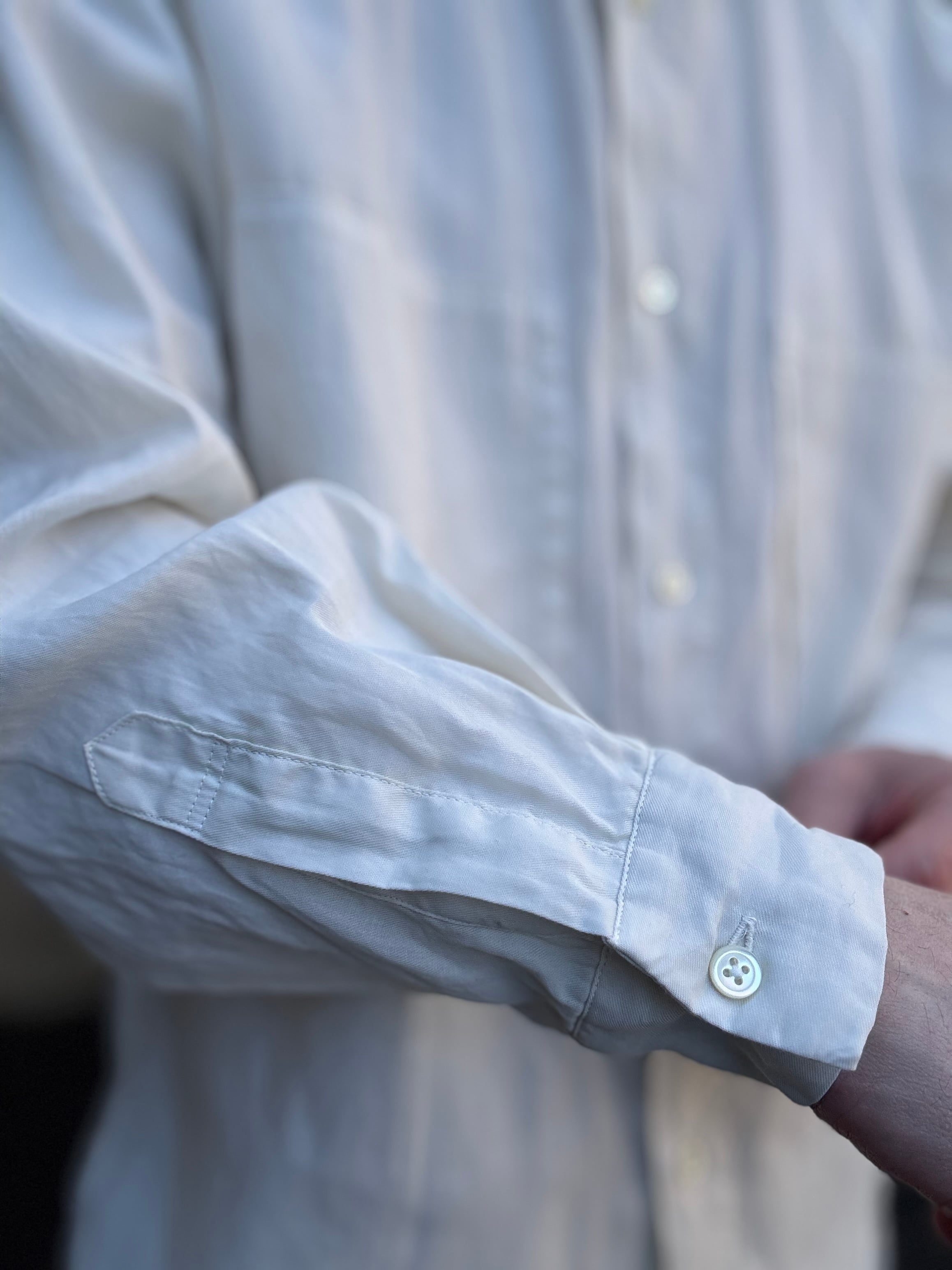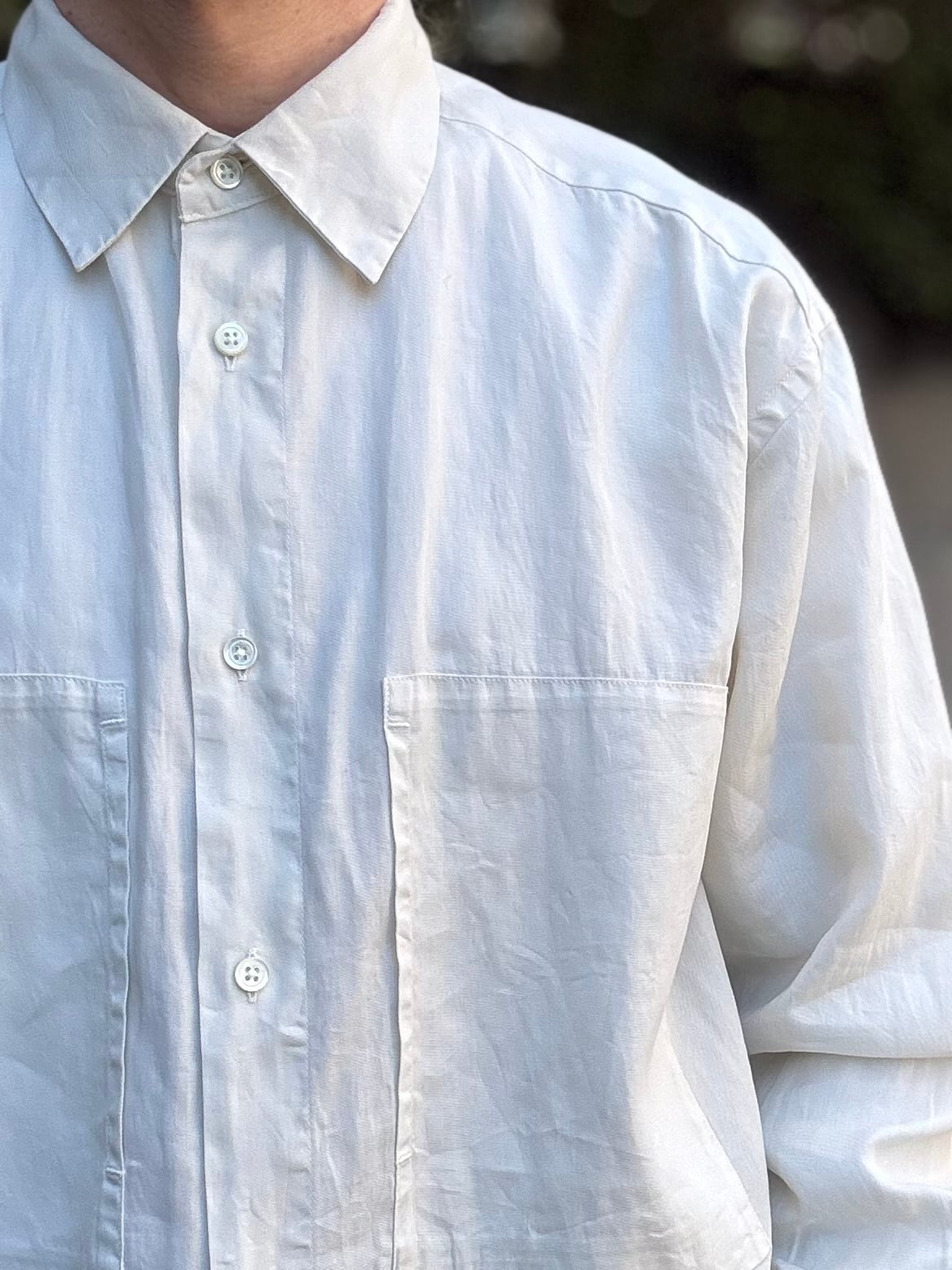 コットン100%とは思えないようなドライなタッチと麻のようなシャリ感が特徴の長袖シャツ。製品染めを施しているので上品な印象の中にもラフな雰囲気があります。ゆったり目のサイズ感とWポケットのデザインでシャツアウター的にも使用できるアイテムです。