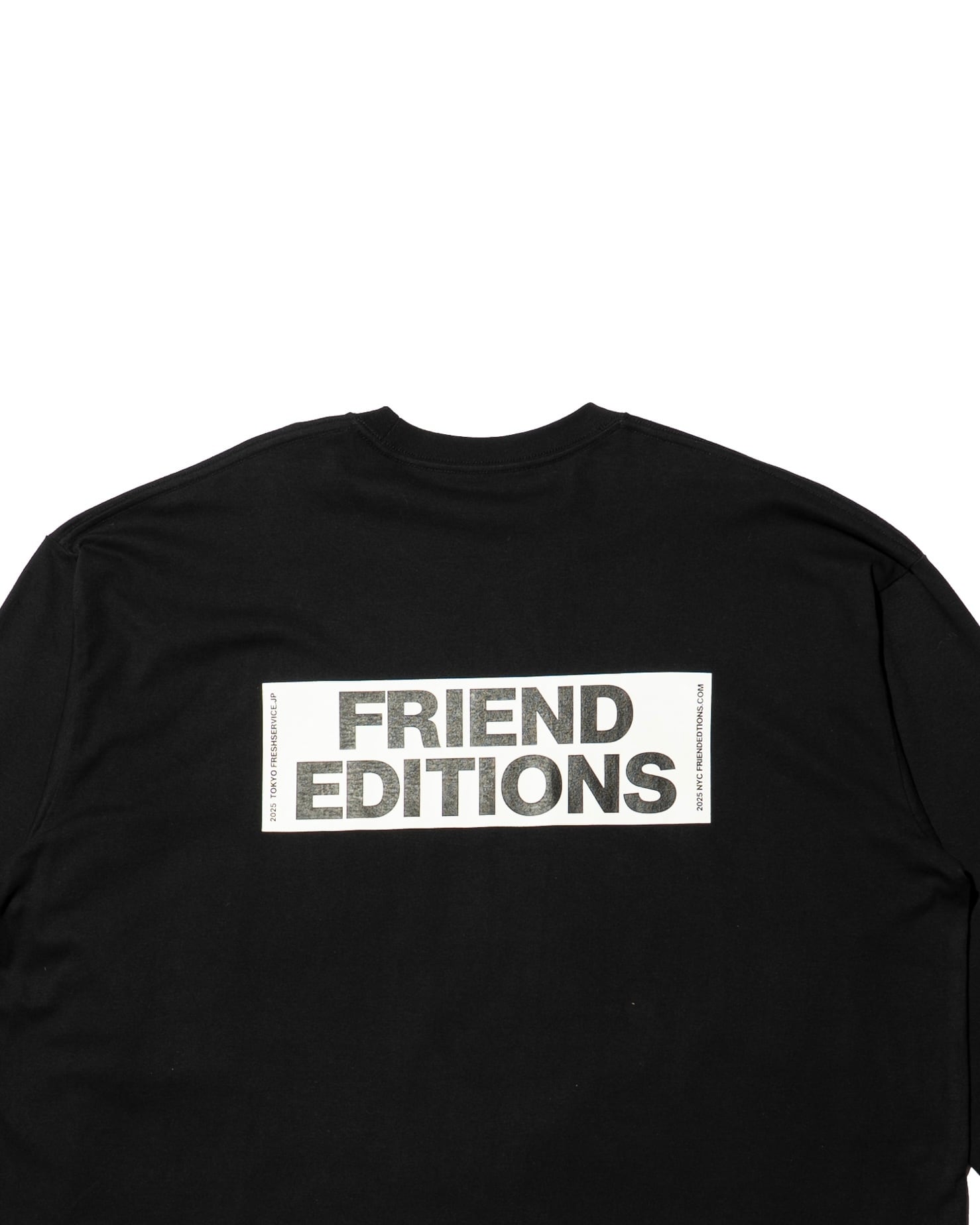 FRIEND EDITIONSとのコラボレーションによって生まれたグラフィックTシャツ。FSとFEのリレーションを表現した“NYC × TYO”のメッセージを落とし込み、袖口のプリントがさりげないアクセントになっています。バックには「FRIEND EDITIONS」のステッカーを模したプリントを、裾にはスペックロゴを配置し、ミニマルながらもグラフィックの存在感を楽しめるデザインに仕上げました。6.2オンスのコットンボディを使用し、さらっとした肌触りと型崩れしにくいタフな仕立てが魅力。肩が落ちるドロップショルダーとゆとりのあるシルエットで、1枚で着用するだけでもこなれた印象を演出します。ショーツからワイドパンツまで幅広いスタイルに合わせやすい、デイリーに活躍する一枚です。