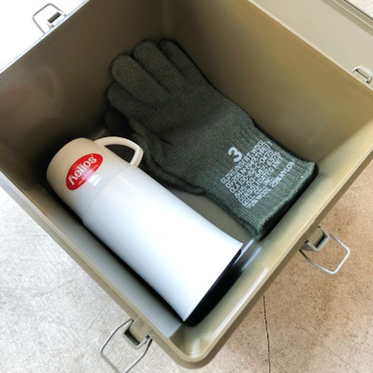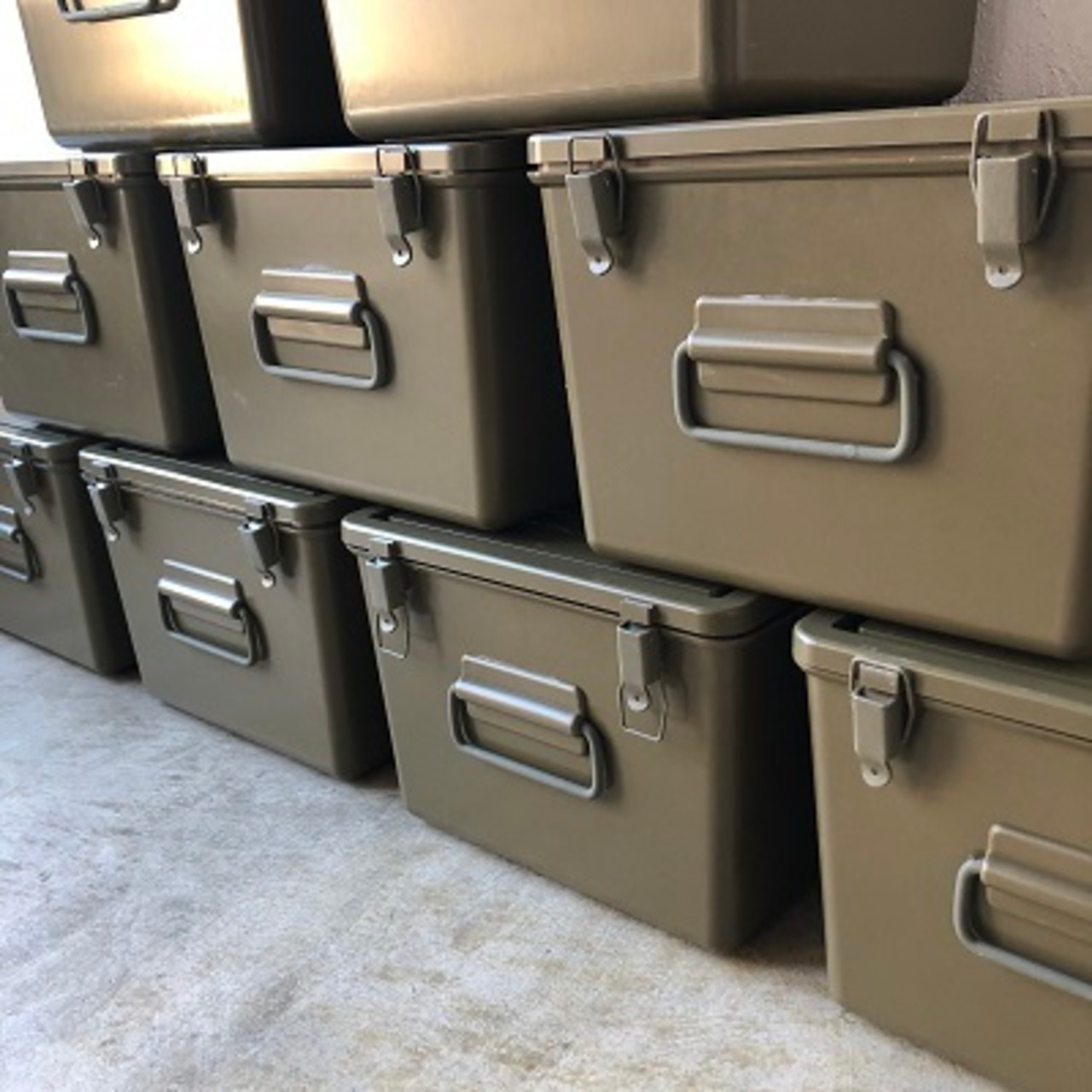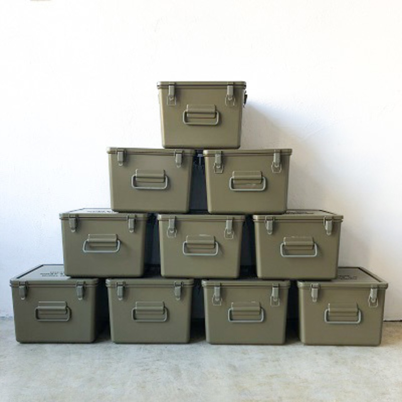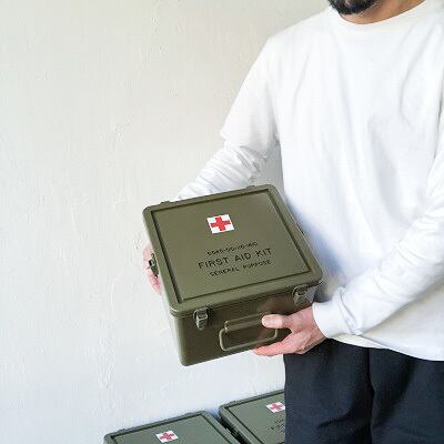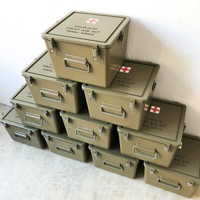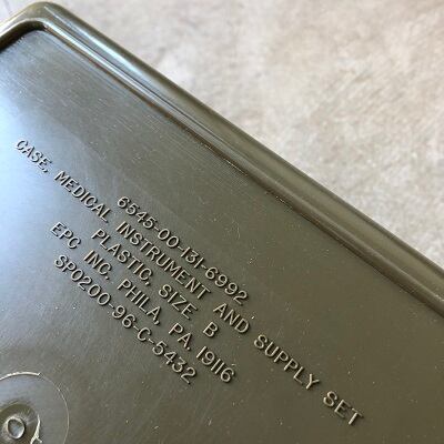 アメリカ軍で使用されていたメディカルサプライボックスは希少なデッドストック(未使用品)です。本来はFIRST AID KIT(救急箱)の収納ケースとして使われる物で、丈夫なプラスチック製の本体と蓋にメタル製のヒンジロックが付いています。蓋にはパッキンが付いています。一般的な500mlのペットボトルが横置きできるサイズ感で、アイデア次第で様々な収納ケースとしてお使い頂けます。クローゼットの小分けやツールボックス、またキャンプなどのアウトドアでの使用もおススメです。いくつも重ねて使えばミリタリーテイストのお部屋作りにもぴったりのインテリアになります。
