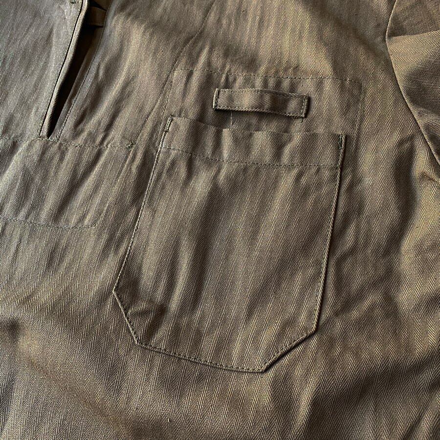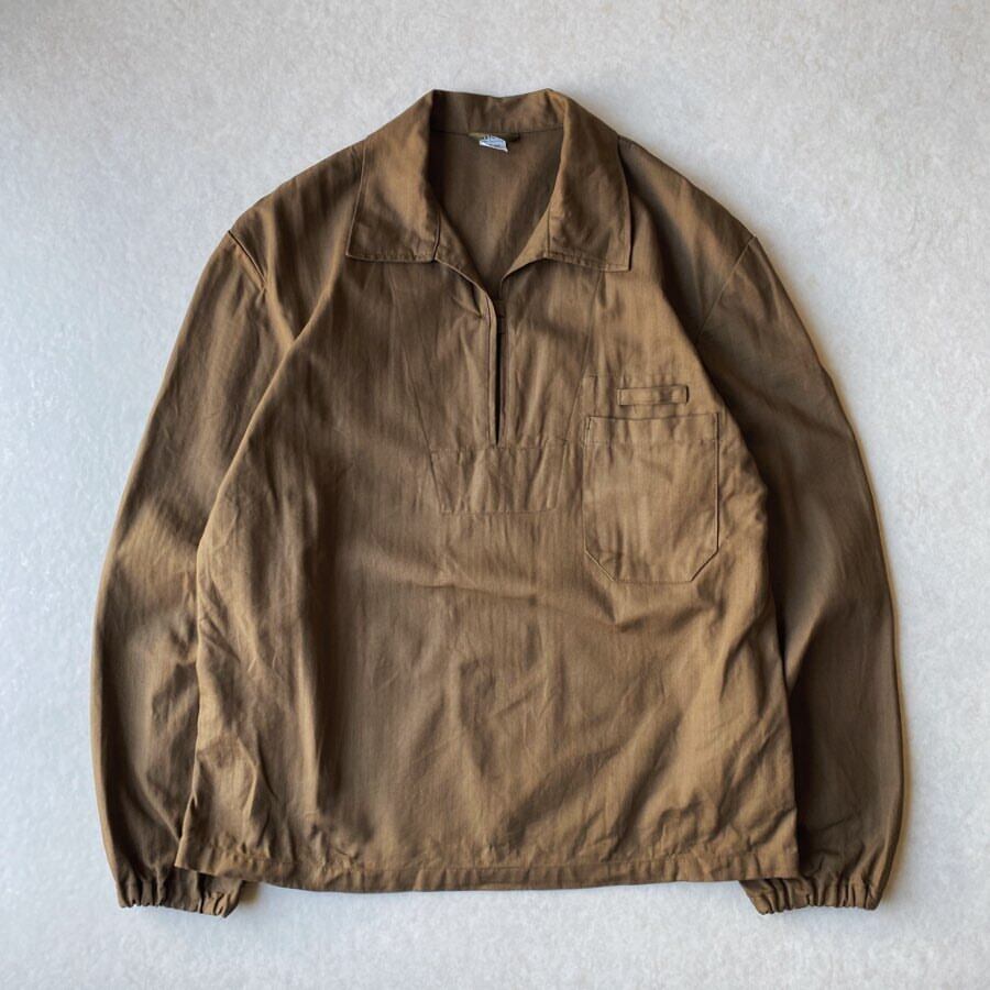 1990年代のチェコ軍のプルオーバーシャツが入荷です。希少なデッドストック(未使用品)になります。丈夫なヘリンボーンツイルを使ったこちらのシャツは、様々な作業などに対応したユーティリティシャツのような物だと思われます。短い袖のタイプも存在しますが、こちらは長袖タイプの物となります。大きく開く胸元にボタン留めが一つ、袖口にはゴムが入っております。チェコ軍特有のブラウンカラーで、洗っていくうちにヴィンテージらしい風合いになっていくのも魅力です。未洗いの物とワンウォッシュした物が混在しております。