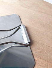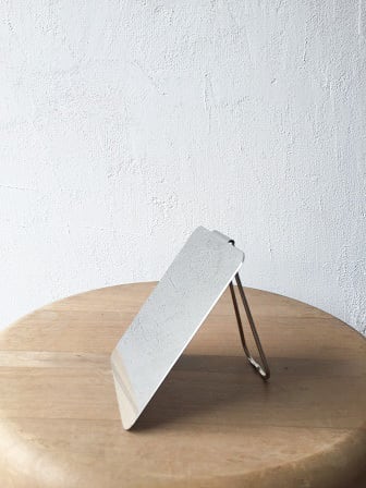 イタリア軍の折り畳み式ステンレス製ミラーです。100%ステンレス素材でつくられ、表面をポリッシュ加工により磨き上げています。ガラスのように割れる事がなく安全で軽量のため、イタリア軍用として採用されていた物です。野外においてシェーヴィング用として使われるほか、光の反射を使ったシグナルミラーとしても使われていたようです。手持ち用と思われる折りたたみのハンドル部分は、ミラースタンドにもなります。