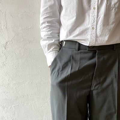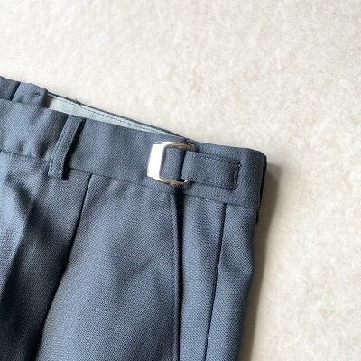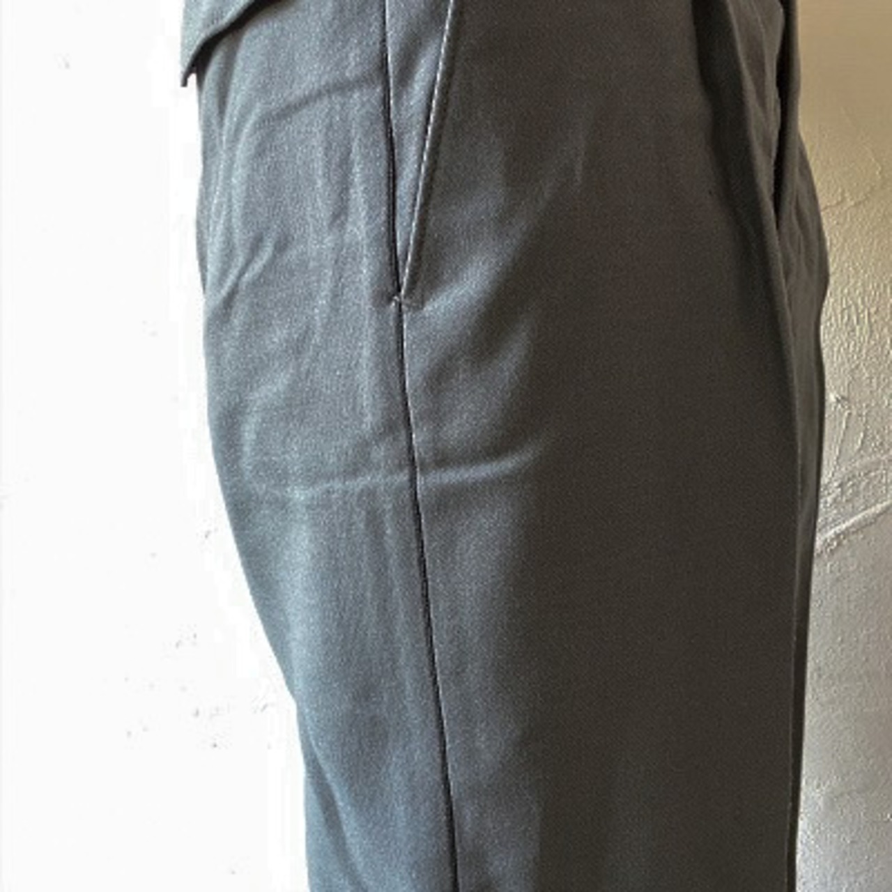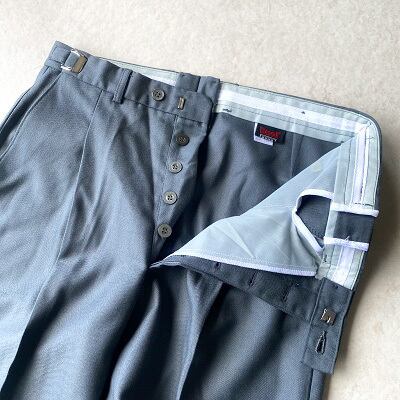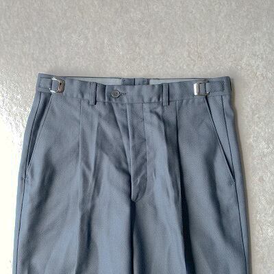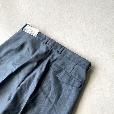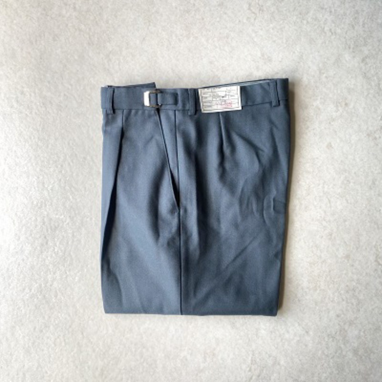 1990年代製のチェコ軍のパレードパンツです。希少なデッドストック(当時の未使用品)になります。チェコ軍のパレードや式典の時などに採用されていたと思われる準礼服のスラックス。落ち着いた色合いのグレーの生地は、恐らくウールとポリエステルの混紡生地で、しっかりとしたハりと柔らかさを兼ねたドライ感のある生地となっています。シルエットはワンタックのストレートで、センタープレスの効いた綺麗なライン。サイドアジャスターはON/OFFがワンタッチで行え、どこで留めても生地が寄らないスライド式なので見た目がすっきりと見えます。レングスが長めなので、裾をきっちりと自分サイズに直すと綺麗に穿いて頂けると思います。