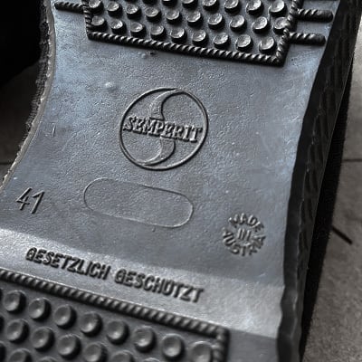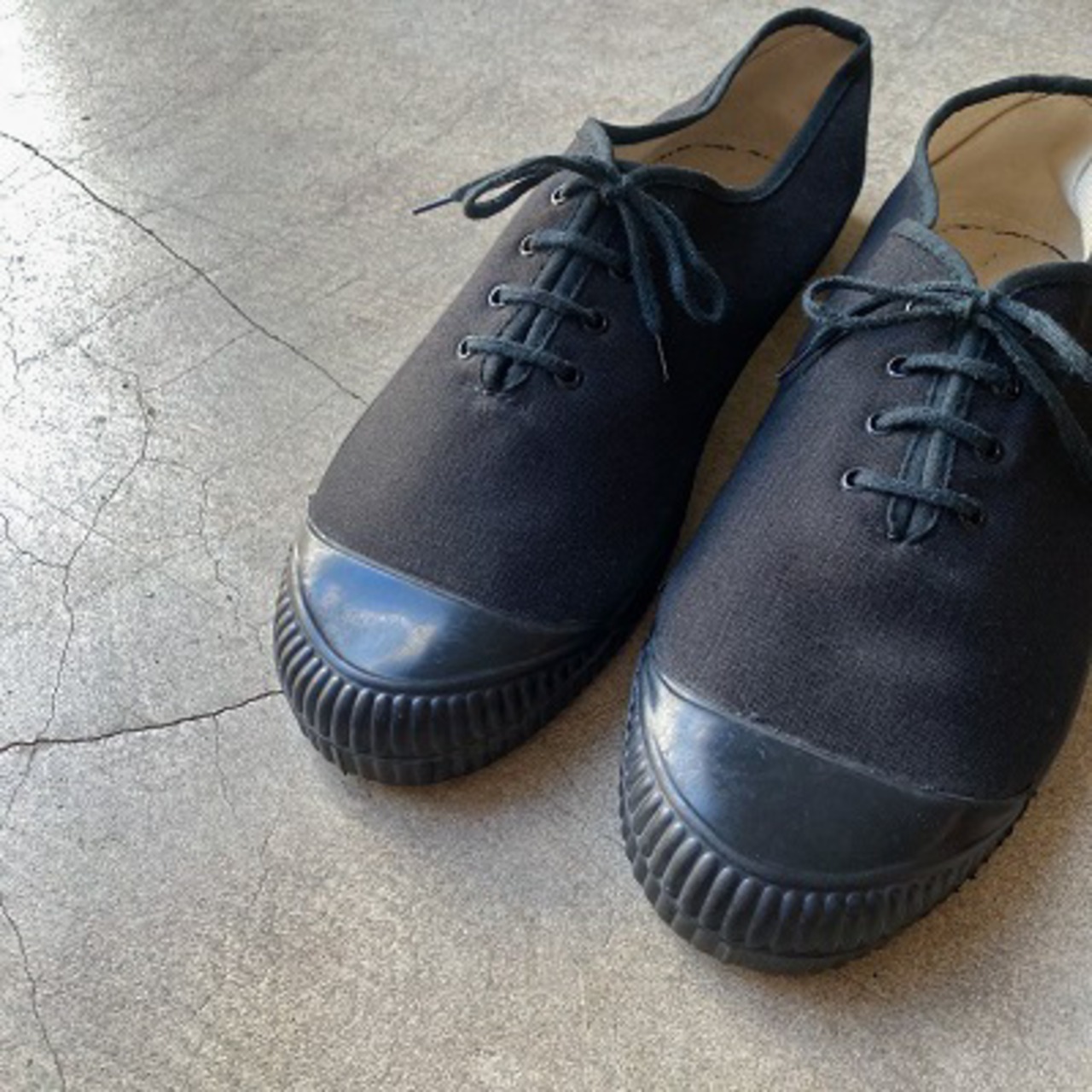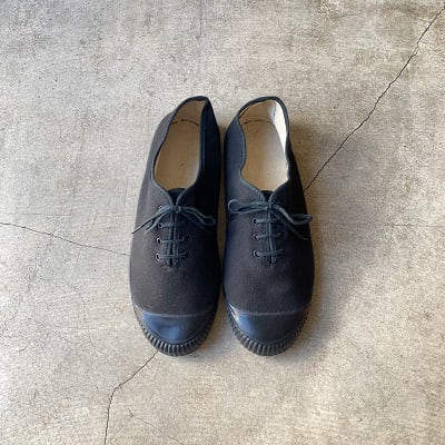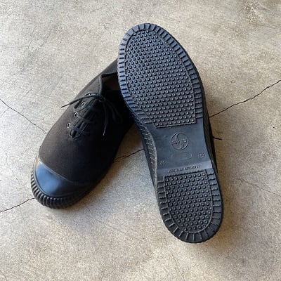 1960~1970年代にオーストリア軍へ納入されていたキャンバスシューズです。希少なデッドストック(当時の未使用品)になります。アッパーはキャンバス素材、ソールとつま先部分はラバー素材になります。シンプルでレトロなデザインとソールまで全てブラックで統一されたカラーリングが、とても洗練された印象です。シューズの内側にはHBA(軍被服局)の検定年を示すスタンプが押されております。ミニマルなスタイリングにはもちろんですが、ジャンルを問わず幅広いスタイルにマッチする一足です。