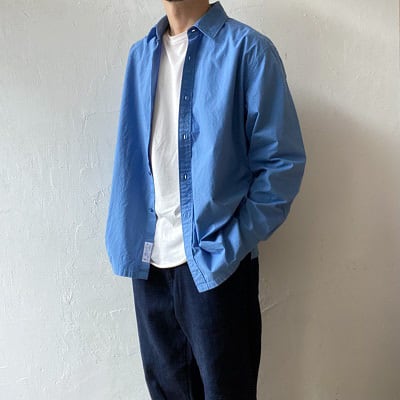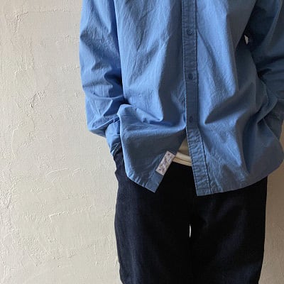 元「1LDK」にてゼネラルマネージャーを務め、現在はパリ在住のファッションインプルーバーとして活躍する関 隼平氏がデザイナーを務めるブランドSH(エスエイチ)。厳選された素材を使い「フランスから見たアメリカ」をテーマにカジュアルかつエレガントなコレクションを展開しています。今回はそんな「SH」とのコラボレーションにて実現したアイテム。フランスの名門であり最古のシャツブランドのヴィンテージシャツを元ネタに完成させた一枚。SHオリジナルの生地は、高品質な超長綿のスーピマコットンとソルピマコットンを贅沢に使ったオックスフォードクロス。高密度に織られたオックス地はハリとコシを持ちながら、同時に滑らかさと超長綿のしっとりとした肌触りが特徴です。身幅はややワイドで裾はスクエアカット。サイドにはポケットがついており、ジャケットやブルゾンのような雰囲気も持ち合わせています。アイデアのべースはドレスシャツですが、カジュアルに使って頂ける一枚です。