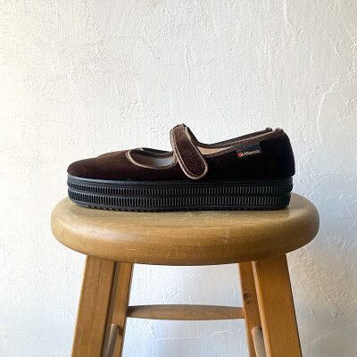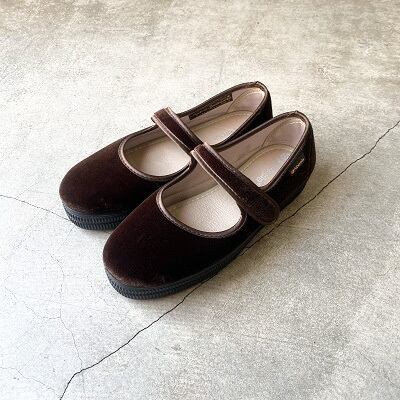 ベルベット素材を使用したカジュアルシューズ。ベルクロのストラップにより着用がスムーズに行えます。上品なブラウン(マロン)カラーに厚底のフラットソールとシンプルなデザインが合わせやすく、柔らかな素材が足に馴染みとても穿きやすいシューズです。