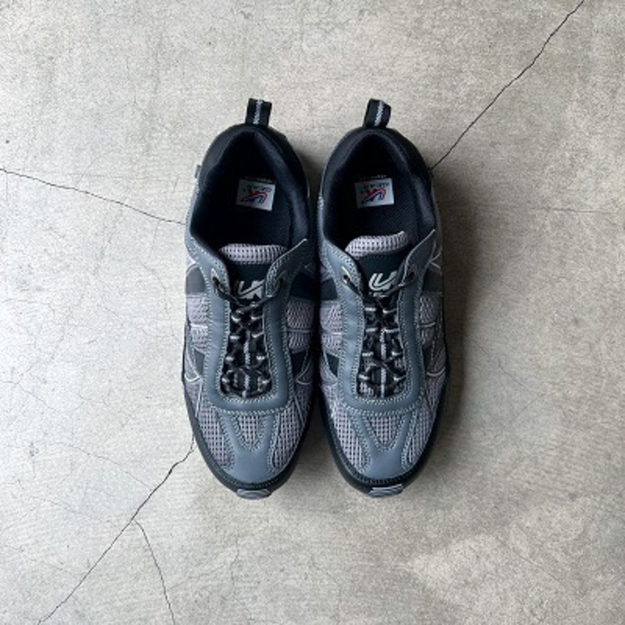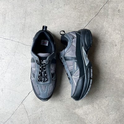 イギリス軍で採用されているフィジカルトレーニング用のミリタリーシューズです。一般には出回る事の少ない、非常にレアな本格的ハイスペックモデル。メッシュのアッパーを使ったボディはしっかりとしたホールド感があり、またグリップ性の高いソールは足が自然と前に出るよう設計されております。グレーとブラックの落ち着いたカラーが合わせやすく、程良いボリューム感も幅広いスタイリングにマッチします。UK GEARはアメリカ軍、ドイツ軍、ギリシャ軍、ポーランド特殊部隊、USAFA、USMA等、世界の名だたるミリタリー関連組織に供給を行っているプロフェッショナル向けのメーカーです。