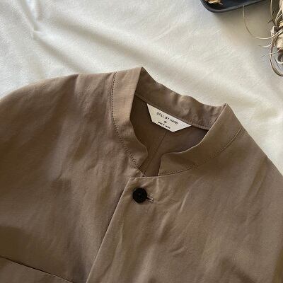 スティルバイハンドらしいデザインのスタンドカラージャケット。キュプラ/綿/リネンを合わせた生地は、春夏らしいリラックスな素材感を目指したオリジナルのファブリック。大きなWポケットがデザインのポイントで、シャツの延長にあるようなライトな着心地のジャケットです。