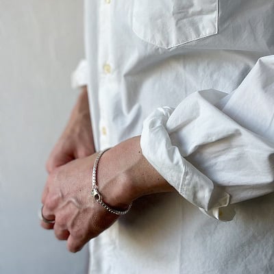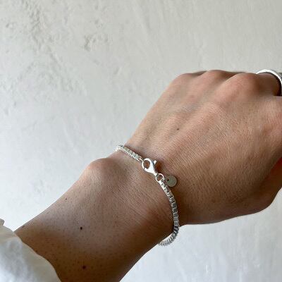 SV925 (純銀)を使用したヴェネチアン チェーンブレスレット。3mm幅の繊細なシルバーチェーンで作ったミニマルなブレスレット。スタイル、性別、TPO問わずつけていただけます。他のブレスレットや腕時計と合わせてつけられるミニマルさが魅力。