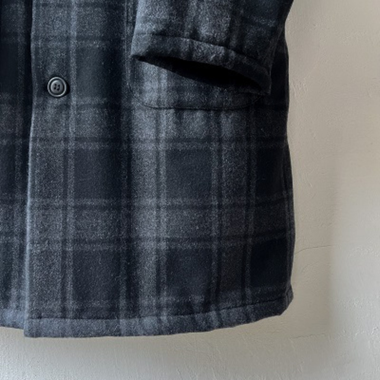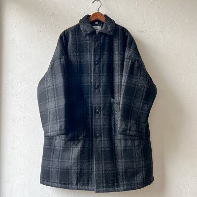 柔らかなウール混素材を使用したユニセックスのダスターコート。ライナーにはキルティングの中綿が入っており、防寒性の高い仕様となっております。着丈もしっかりとあるのでより暖かく、そして見た目以上に軽いコートです。肩をしっかりと落としたワイドなデザインで、厚手のインナーでもしっかりと着込むことが可能です。落ち着いたトーンのチェック柄は、カジュアル過ぎない上品な印象です。