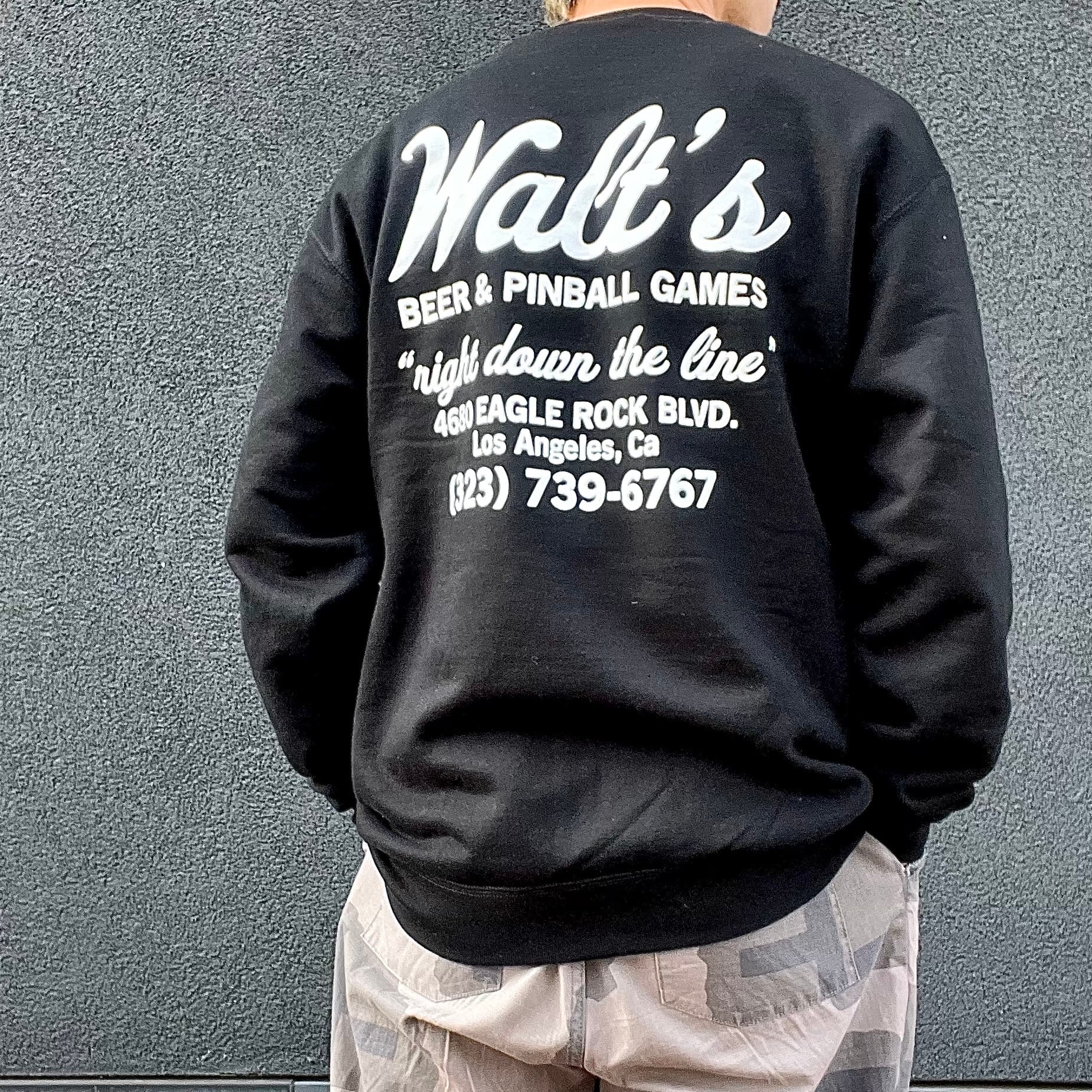 アメリカ・ロサンゼルスのイーグルロックエリアにあるWalt’s Barのロゴスウェットシャツ。大きくプリントされたバックサイドのデザインがインパクトのある一枚。ボディーはChampionのスウェットシャツになります。