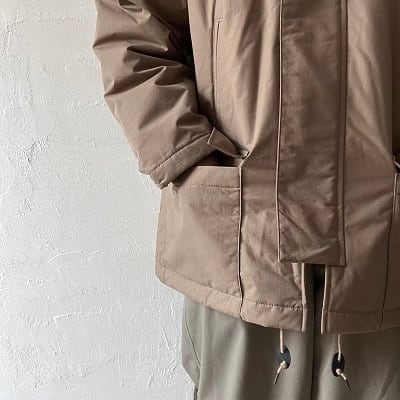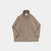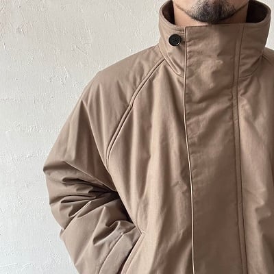 コットンライクな表情が特徴のナイロングログラン素材の立ち襟ハーフコート。撥水性と透湿性にも優れた素材感で機能性とデザイン性を両立したコートです。ハンドウォーマーポケットとフラップ付きポケットの合計4つのポケットを装備。お尻まですっぽりと覆うデザインで寒い気温の中でも防寒性はバッチリです。中綿には保温性の高い3M社のシンサレートEXソフトを採用しており、軽くて暖かいコートとなっています。