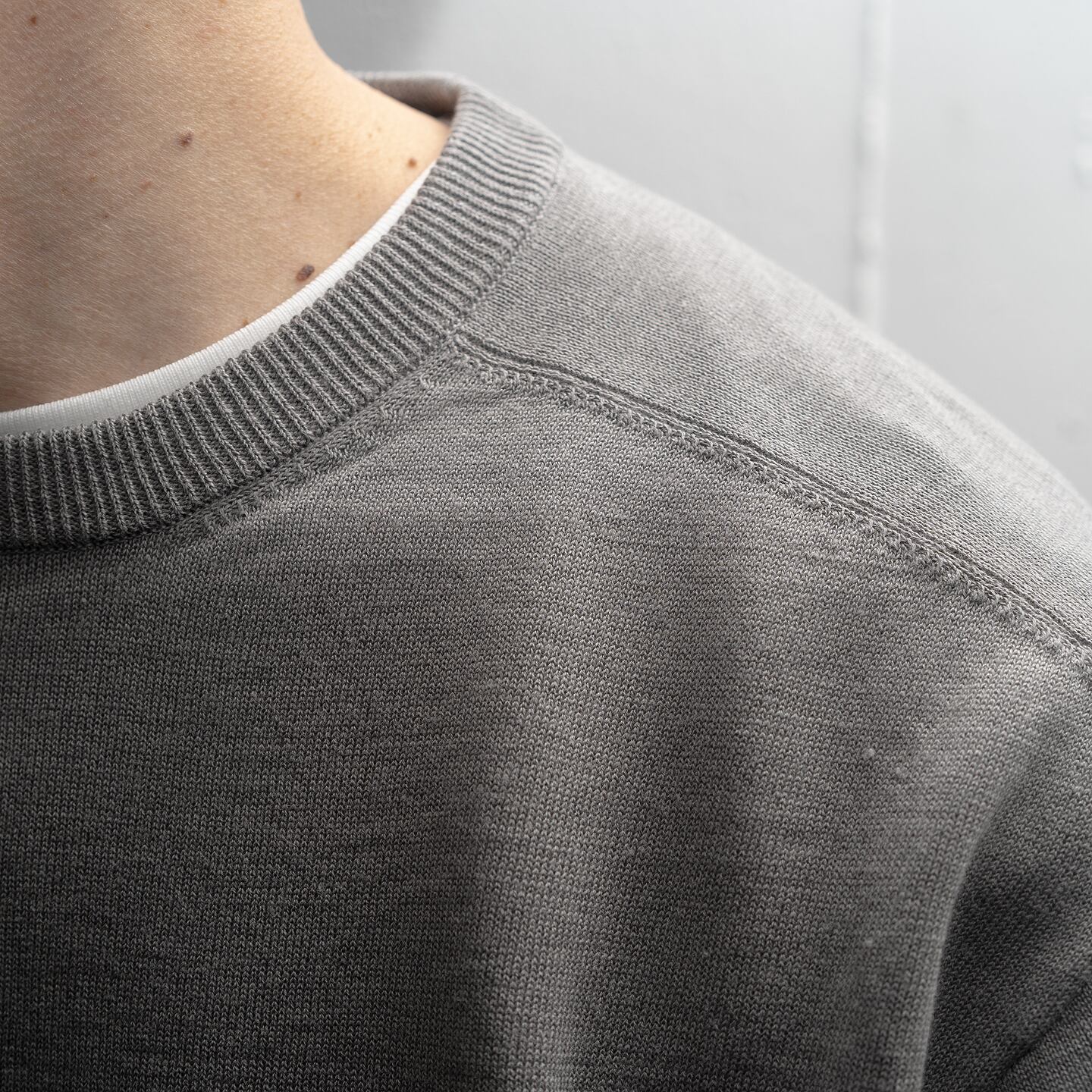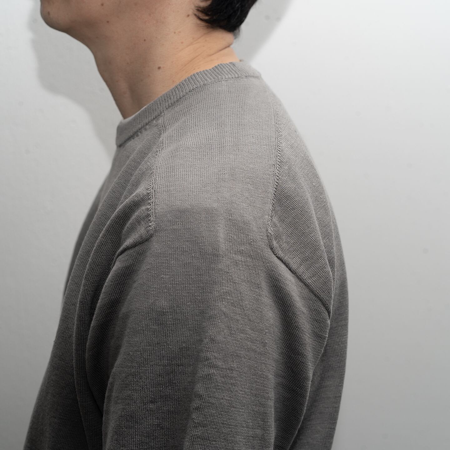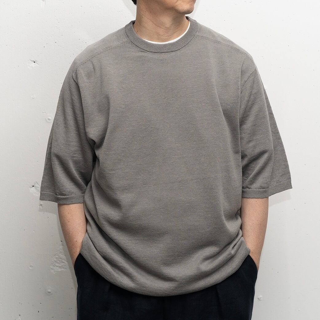 リネン高混率の混紡糸をオリジナルカラーで染色したニットTシャツ。 リネンとニットの組み合わせで、カジュアルでありながら落ち着きのあるスタイリングが可能で、秋口まで長く活躍するアイテムです。リネン高混率でありながら縮率が安定しているため、お洒落着洗いで家庭での洗濯も可能です。