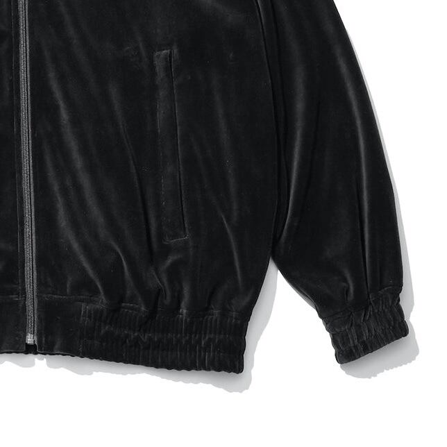 クラシックなベロアジャージーが上品さを醸し出すジップアップブルゾン。ドロップショルダーでゆったりとしたシルエットに柔らかく光沢のあるベロア素材が映える一着です。スタンドカラータイプでアクティブな印象もありながら、デニムやウールのスラックスなどで外したりと楽しめるブルゾンです。