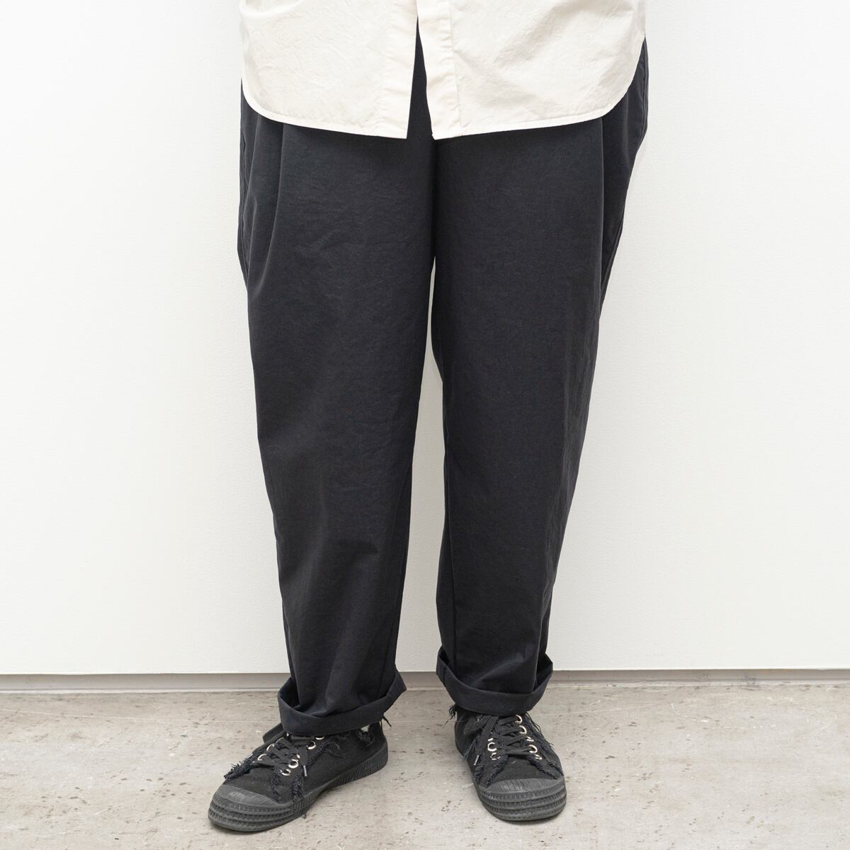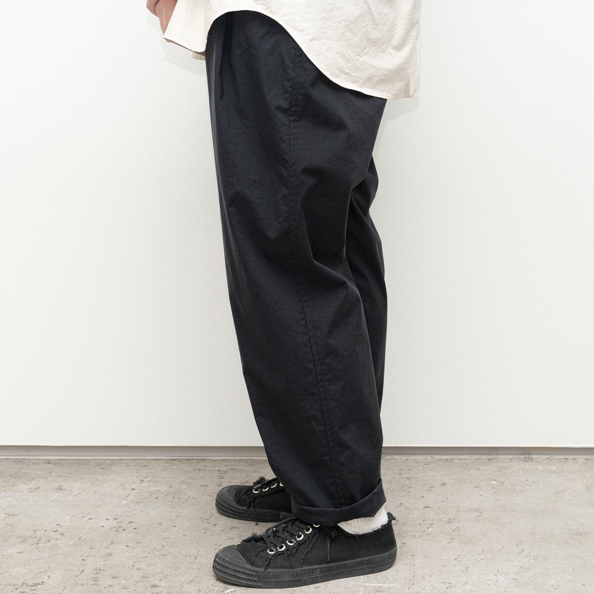昨年大変好評だったモデルが今期も再び登場。今回は少しだけ調整を加えてアップデートモデルとしてリリースです。ナイロン100でありながらタスラン糸を使った天然ライクな素材感とシルエットが人気のポイント。幅広いスタイリングに対応できる万能なパンツです。