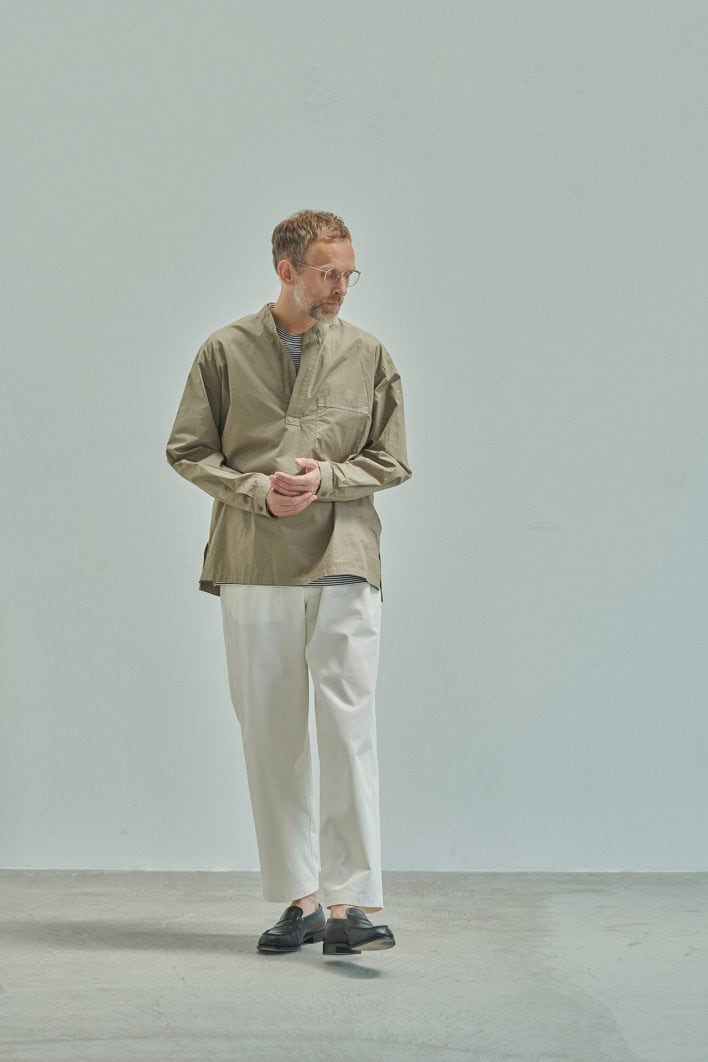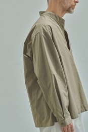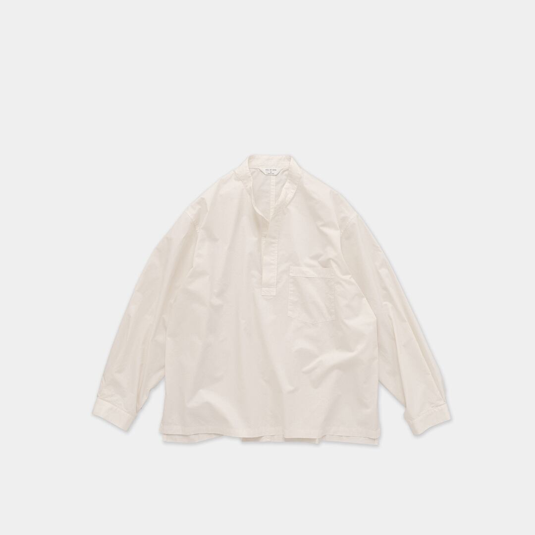 スタイリングの幅を広げてくれるスキッパーデザインのプルオーバーシャツ。ボタンレスでラフなイメージもありながら、上品に合わせられるシャツです。細番手を綾織りで織った生地は、高密度かつ適度な落ち感があるのが特徴です。ブルゾンやジャケットのインナーとしてはもちろん、一枚で着てもしっかりと主役になるシャツです。